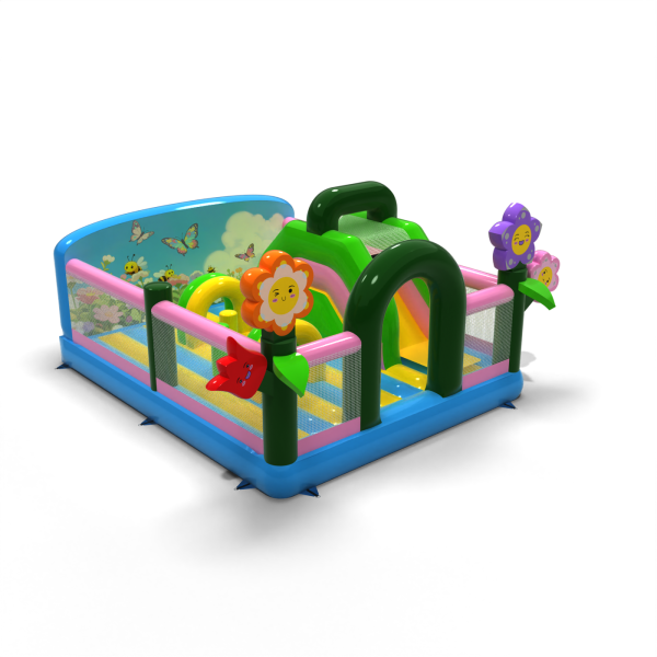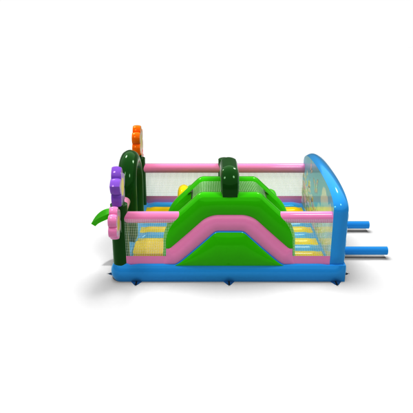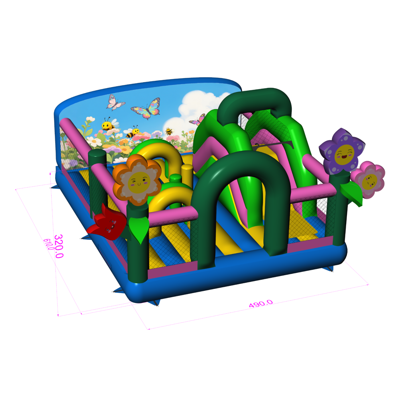 Nafukovací hřiště 6x5 s jarním motivem je obzvláště okouzlující volbou pro půjčovny, které hledají atrakce pro rodinné pikniky, festivaly a venkovní akce. Barevné motivy květin, motýlů a usměvavých postaviček vytvářejí pozitivní náladu a přitahují nejmenší. Hřiště obsahuje překážky, tunel a skluzavku a poskytuje dětem pestrou hru na bezpečném povrchu. Konstrukce umožňuje rychlou obměnu hráčů, takže je ideální pro velké turnusy. Obohaťte svůj sortiment o motiv, který vykouzlí úsměv na tváři již na první pohled.