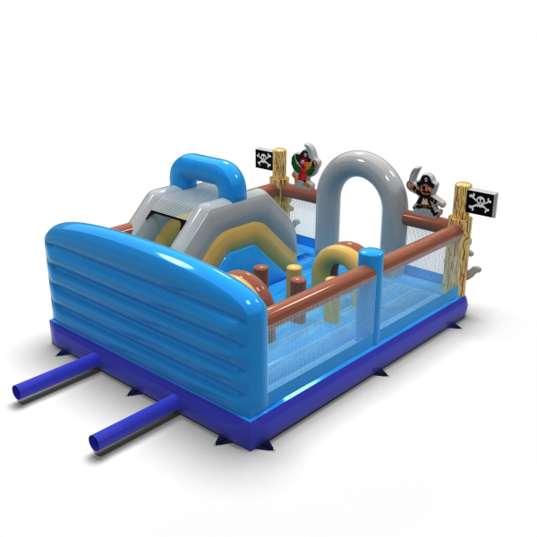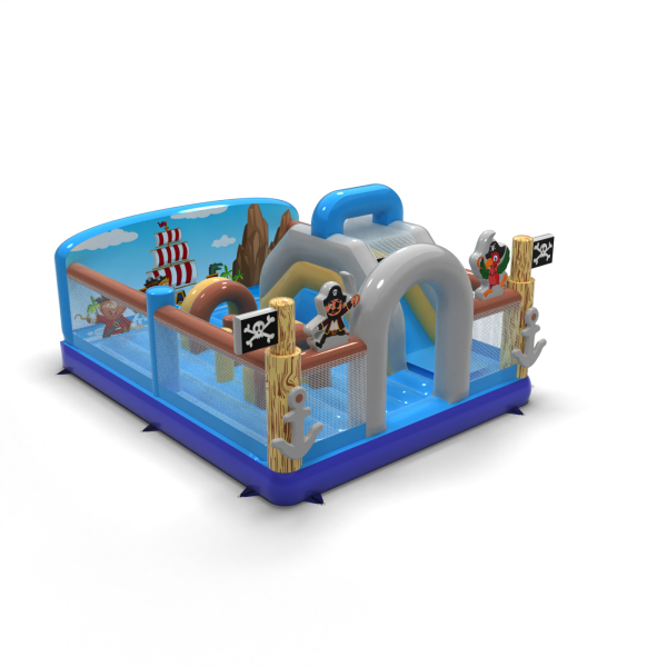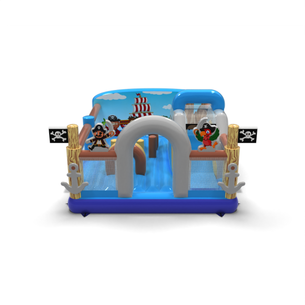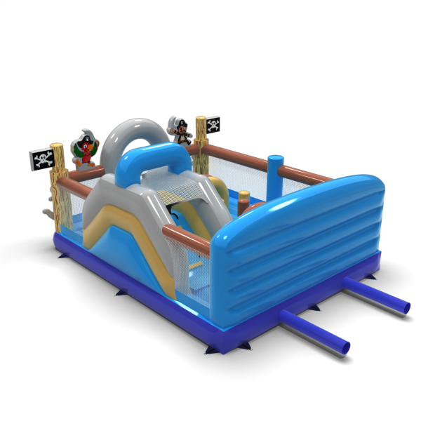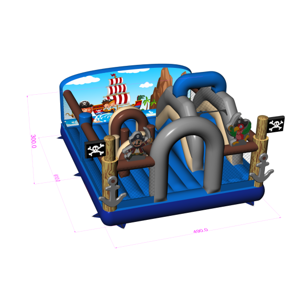 Dobrodružné hřiště s pirátskou tématikou určitě přiláká děti předškolního a mladšího školního věku. Barevná grafika, vlajky s lebkami a postavy pirátů vytvářejí prostředí, které podněcuje představivost a vybízí k objevování. Chytré uspořádání dráhy a skluzavky umožňuje intenzivní zábavu v bezpečném formátu. Vynikající volba pro společnosti pořádající akce a půjčovny, které chtějí zpestřit svou nabídku tematickou atrakcí. Nechte svou zónu vyniknout a pozvěte malé průzkumníky do světa plného dobrodružství!