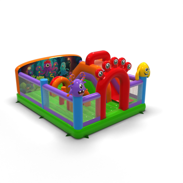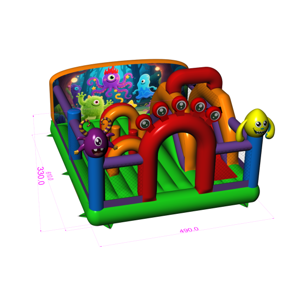 Dokonalá atrakce pro akce s humorem - téma legračních příšerek je skvělé pro děti, které mají rády originální, neotřelé dekorace. Díky poutavým barvám, vtipným postavičkám a chytrému uspořádání překážek se děti budou rády vracet ke hře. Model bude dobře fungovat v jakémkoli prostoru - od školních akcí přes individuální pronájmy až po velké festivaly. Díky nízké výšce a kompaktnímu tvaru se s hřištěm snadno manipuluje a přepravuje. Obohaťte svou nabídku o atrakci, která vykouzlí úsměv na tváři a je nezapomenutelná!