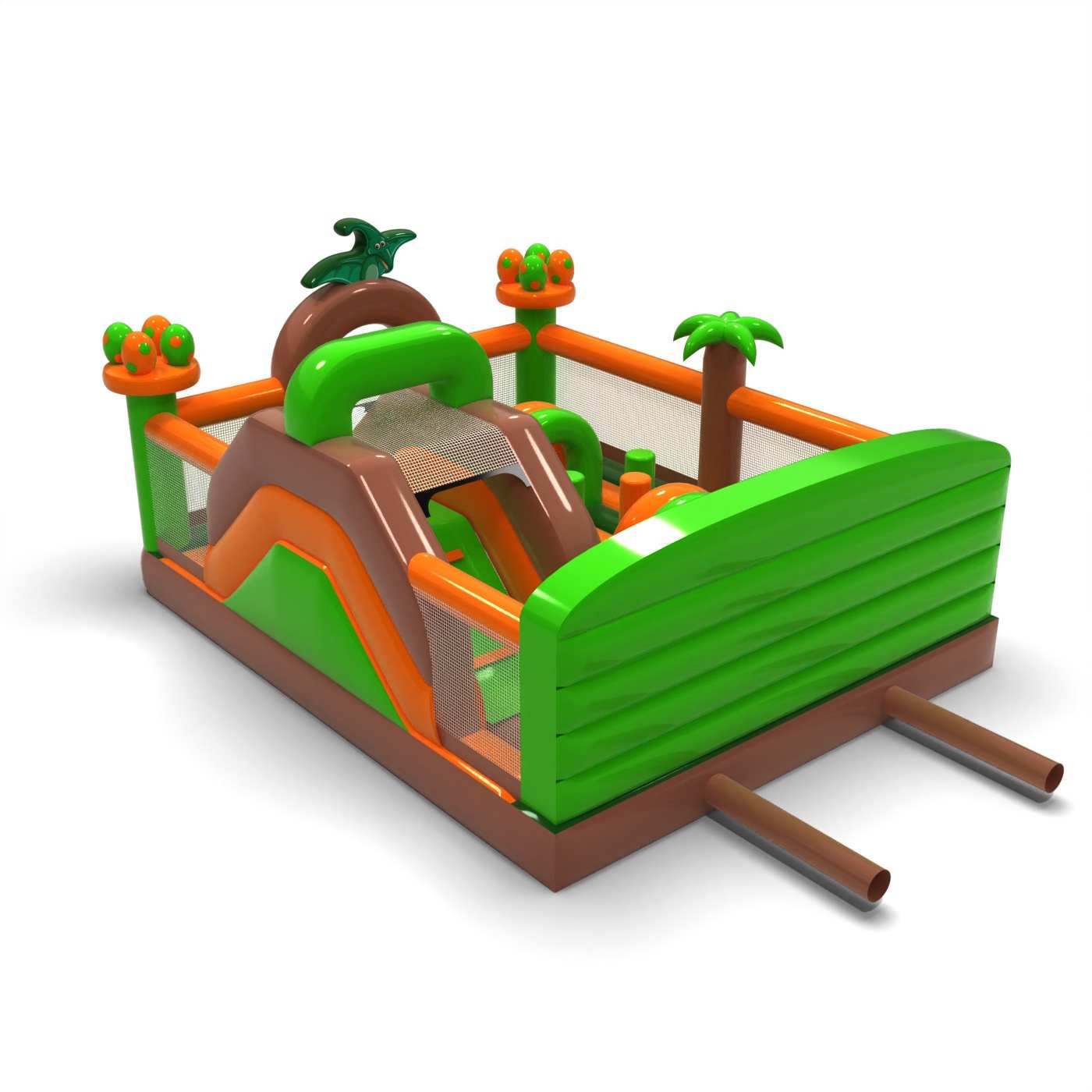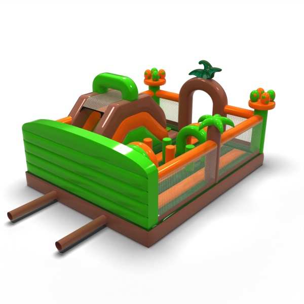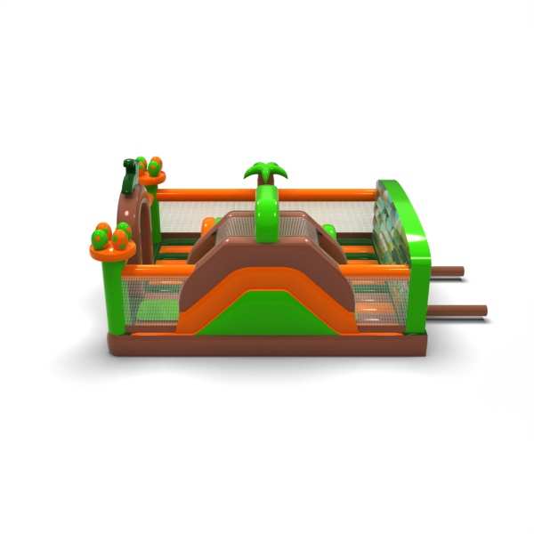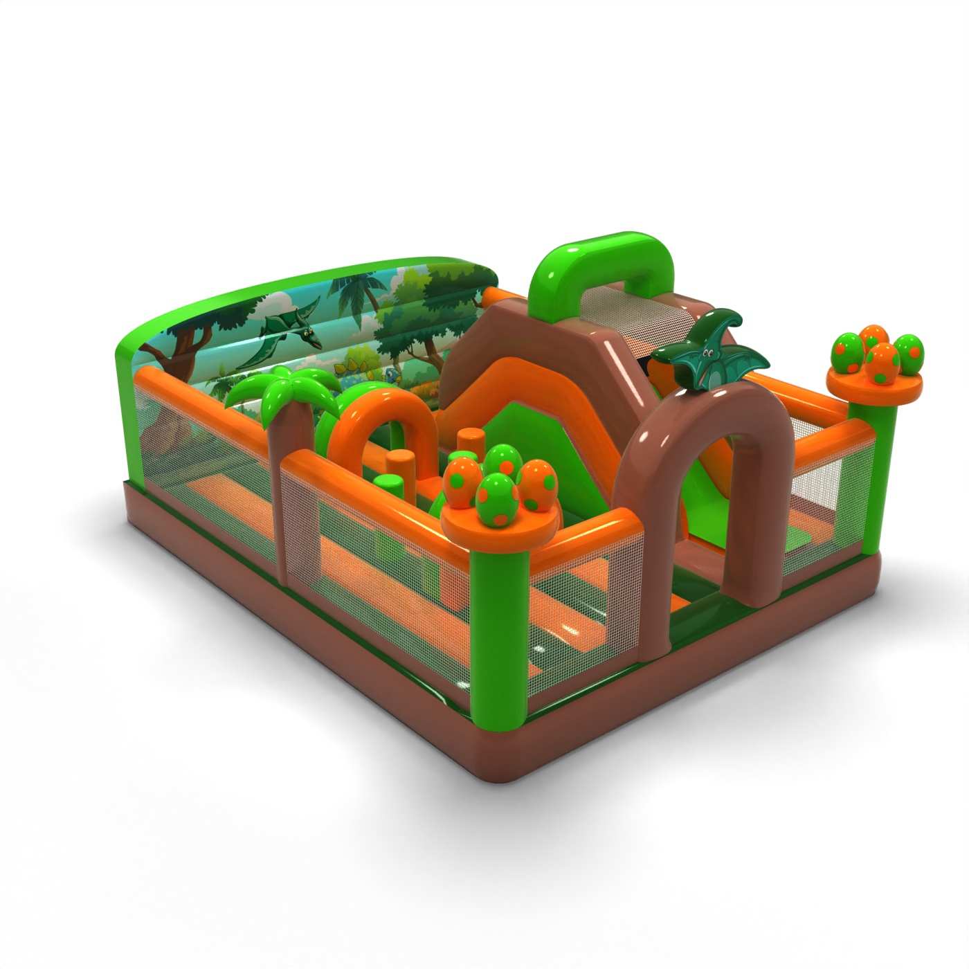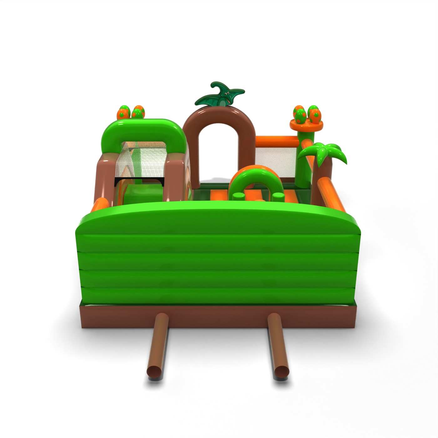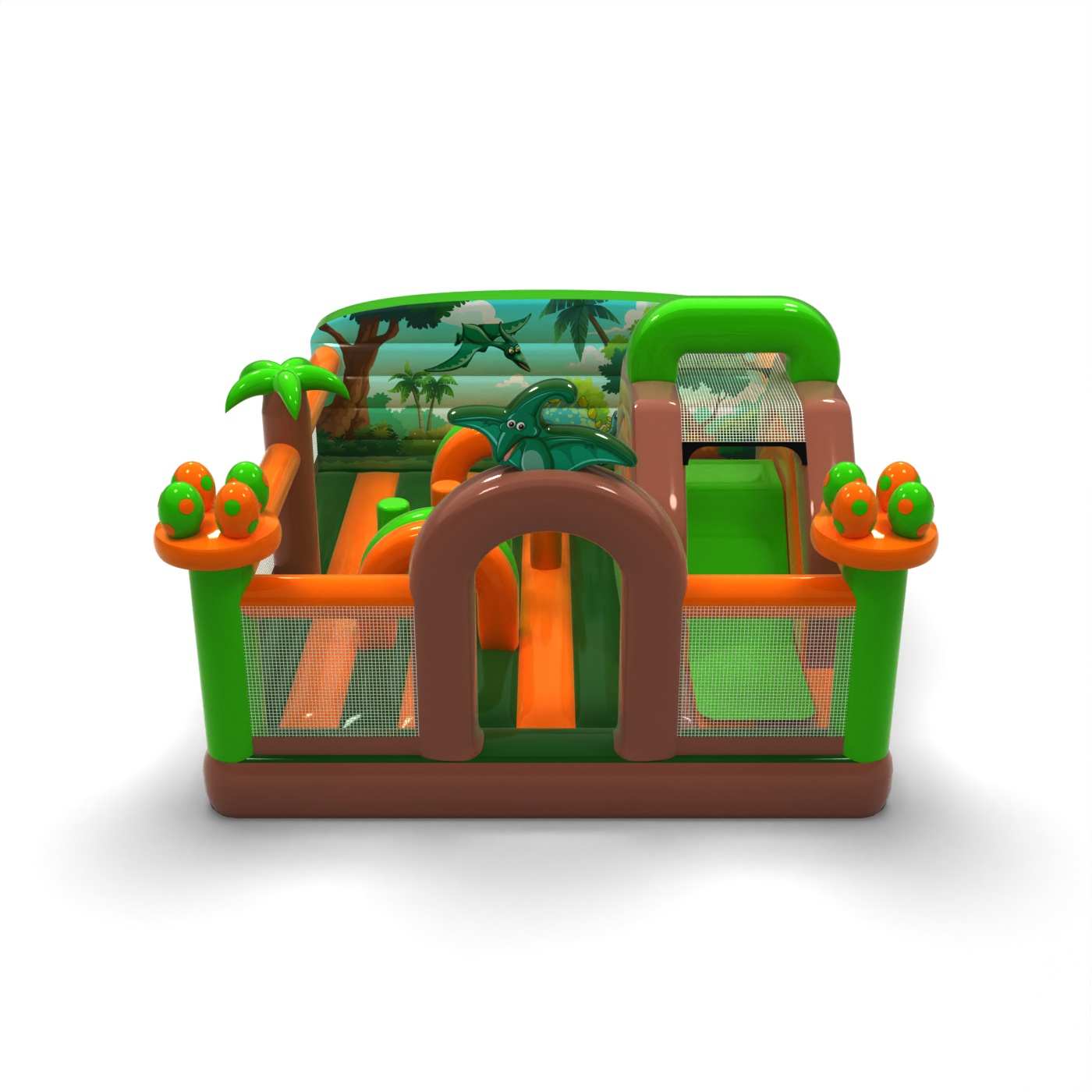 Jurská atmosféra a kompaktní tvar vytvářejí atraktivní hrací plochu, která děti rychle přitahuje a vybízí k aktivitě. Interiér hřiště nabízí řadu prvků pro skákání a pohyb, takže hra zůstává dynamická a poutavá. Dinosauří design vytváří ucelený, dobrodružný příběh a dobře zapadá do tematických animačních zón. Je to praktické řešení pro půjčovny, které hledají atrakci s širokou atraktivitou a dobrou fluktuací účastníků. Hřiště se dobře uplatní na festivalech, rodinných piknicích a venkovních akcích, kde je potřeba kompaktní, ale dobře viditelná atrakce.