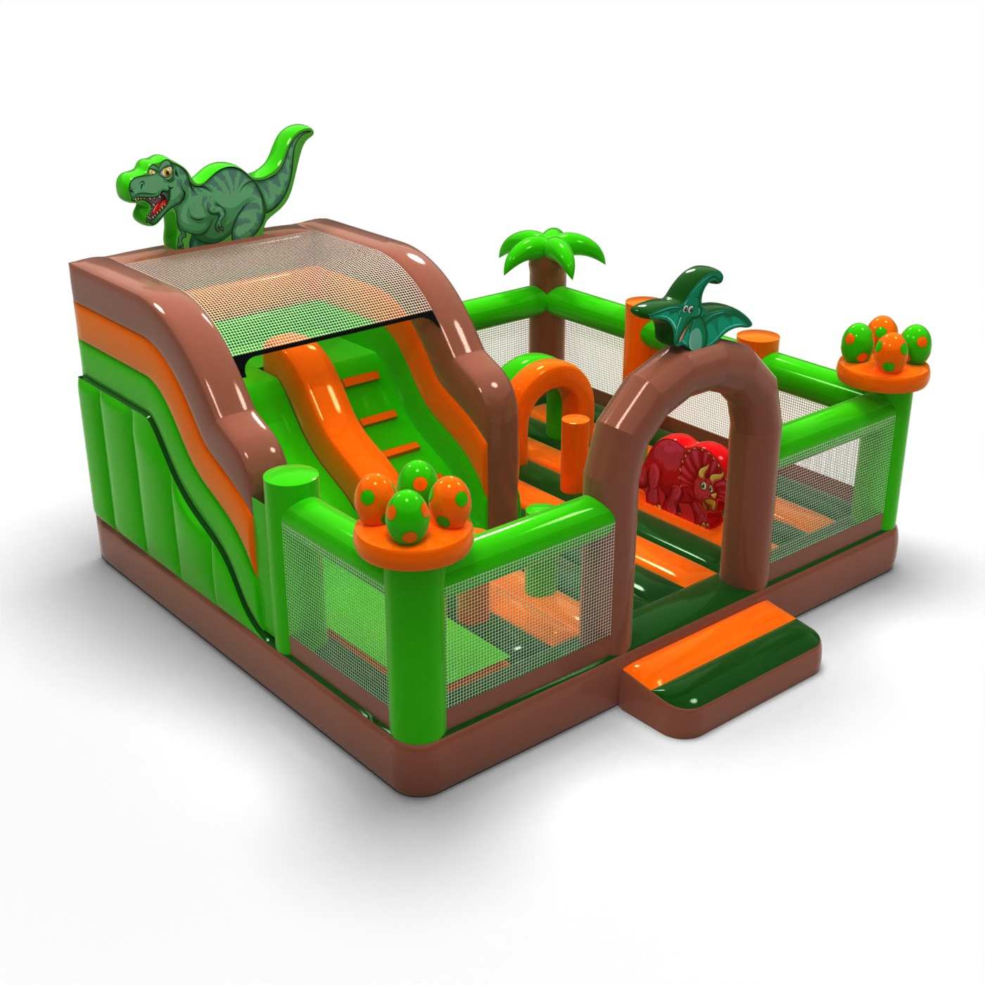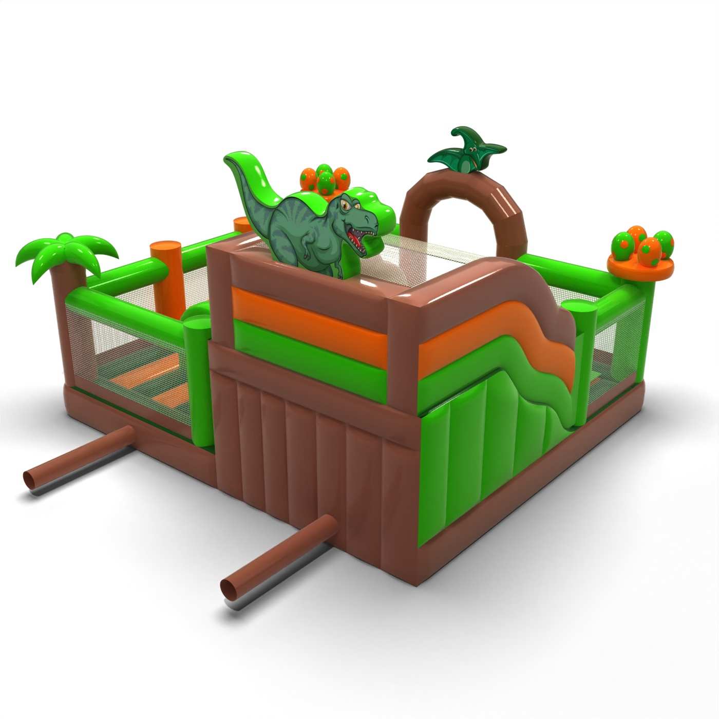 Větší hrací plocha v designu dinosaurů umožňuje vytvořit rozšířenou zónu aktivit pro více dětí. Chytré uspořádání prvků podporuje volný pohyb a přirozené střídání účastníků, aniž by docházelo k přetížení. Prehistorický motiv dodává atrakci charakter a posiluje její vizuální přítomnost na akci. Jedná se o model, který si vybírají pořadatelé, kteří potřebují jedinou nafukovací atrakci schopnou zvládnout intenzivní provoz. Hřiště se nejlépe hodí na větší rodinné a městské akce, kde je důležitý prostor, plynulost hry a dobrá viditelnost atrakce.