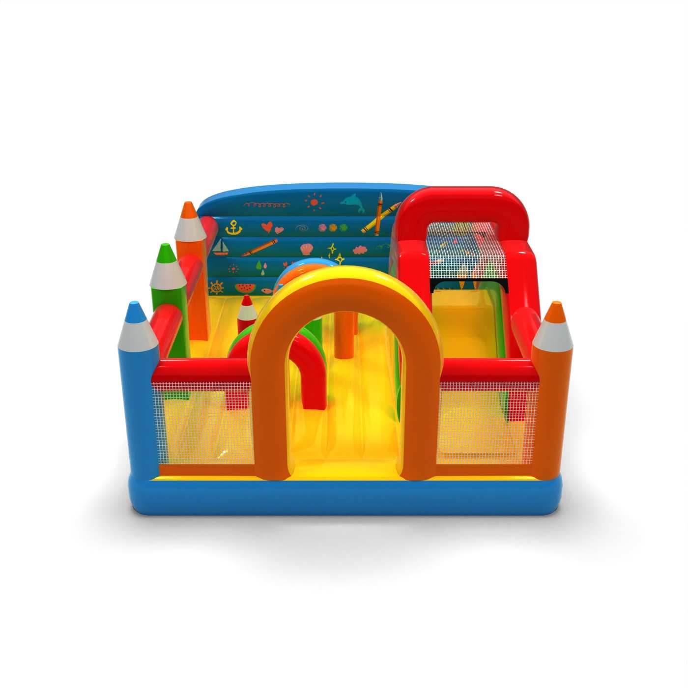 Stejně jako všechny naše nafukovací atrakce je tento produkt vyroben z vysoce kvalitních materiálů – v tomto případě z PVC nové generace s vysokou odolností proti roztržení. Nafukovací hřiště 6x5 s motivem pastelek má rozměry 4,9 m, 6,1 m, 3 m (délka, šířka a výška). Splňuje bezpečnostní normu ČSN EN 14960 pro nafukovací herní zařízení. Doporučujeme použití dmychadel, která jsou součástí balení. Stejně jako většina našich atrakcí je i tento nafukovací prvek kryt dvouletou zárukou. V Gangaru (dříve GunGan) se staráme o to, abyste měli co nejméně starostí – součástí balení je kompletní sada příslušenství potřebného k upevnění atrakce (lana, kolíky). Atrakce byla prověřena z hlediska bezpečnosti nezávislým znalcem.