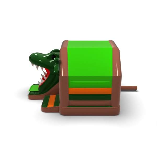 Tvar otevřené tlamy dinosaura vytváří silný, dobrodružný vizuální efekt, který okamžitě upoutá pozornost účastníků akce. Skluzavka vedená skrz tlamu posiluje vzrušení ze hry a dává dětem pocit, že se účastní jurského dobrodružství. Výrazný trojrozměrný design odlišuje atrakci od klasických skluzavek a buduje její rozpoznatelnost. Jedná se o neobvyklý produkt pro půjčovny, které hledají něco, co reálně odliší jejich nabídku od standardních nafukovacích atrakcí. Atrakce je ideální pro festivaly, tematické akce a velké venkovní akce, kde je klíčová velkolepost a silný vizuální dojem.