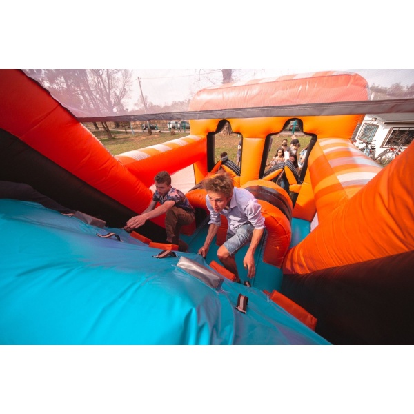 Nafukovací překážková dráha CrashKader "Long" - 30m je určen téměř pro každého, kdo má rád skvělou zábavu spojenou se soutěžením. Nafukovací překážková dráha byla navržena především pro mládež a dospělé, ale je vhodná také pro děti od 6 let. Téměř každý si v této atrakci najde prvky, které mu přinesou spoustu radosti při hře. Produkt doporučujeme všem, kteří chtějí probudit svého soutěživého ducha během hodin venkovní zábavy. Atrakce z této série mohou obsahovat různé prvky s odlišnou obtížností – lezení po stěně, rychlý skluz, a nakonec plazení mezi překážkami, které ztěžují co nejrychlejší zdolání trasy.