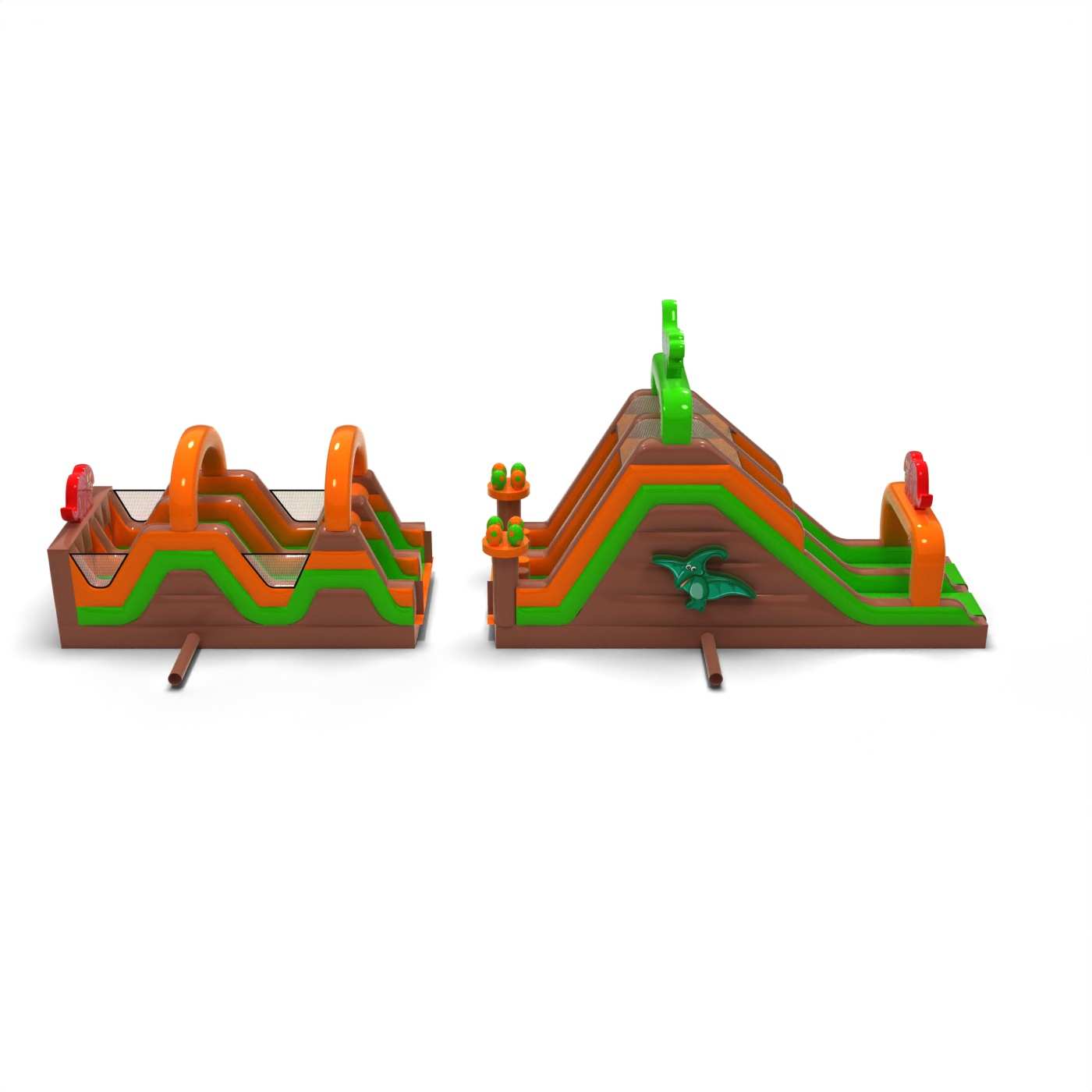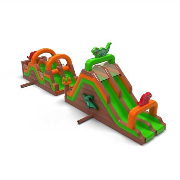 Nafukovací dino překážková dráha - 15 m je určen téměř pro každého, kdo má rád skvělou zábavu spojenou se soutěžením. Nafukovací překážková dráha byla navržena především pro mládež a dospělé, ale je vhodná také pro děti od 6 let. Téměř každý si v této atrakci najde prvky, které mu přinesou spoustu radosti při hře. Produkt doporučujeme všem, kteří chtějí probudit svého soutěživého ducha během hodin venkovní zábavy. Atrakce z této série mohou obsahovat různé prvky s odlišnou obtížností – lezení po stěně, rychlý skluz, a nakonec plazení mezi překážkami, které ztěžují co nejrychlejší zdolání trasy.