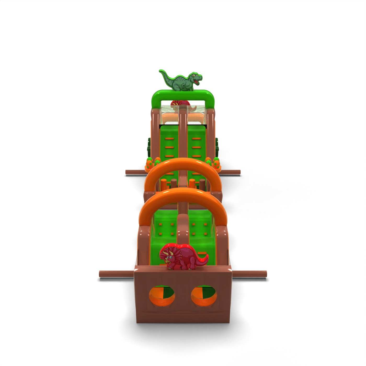 Téma dinosaurů působí na účastníky jako magnet a velká překážková dráha má silný "wow" efekt a od prvních minut vyvolává na akci pohyb a vzrušení. Dynamická překážková dráha účastníky zaujme, umožňuje plynulé střídání dětí a dobře funguje při animaci i volné hře. Jedná se o robustní, stabilní konstrukci určenou pro intenzivní využití při pronájmu a práci na akcích. Díky svému univerzálnímu tématu a vysoké oblíbenosti u zákazníků je dráha výhodnou investicí, která se v průběhu sezóny pravidelně vrací pro objednávky. Atrakce je ideální pro festivaly, rodinné akce, firemní pikniky a venkovní akce, kde je důležitý efekt, kapacita a spolehlivost zařízení.