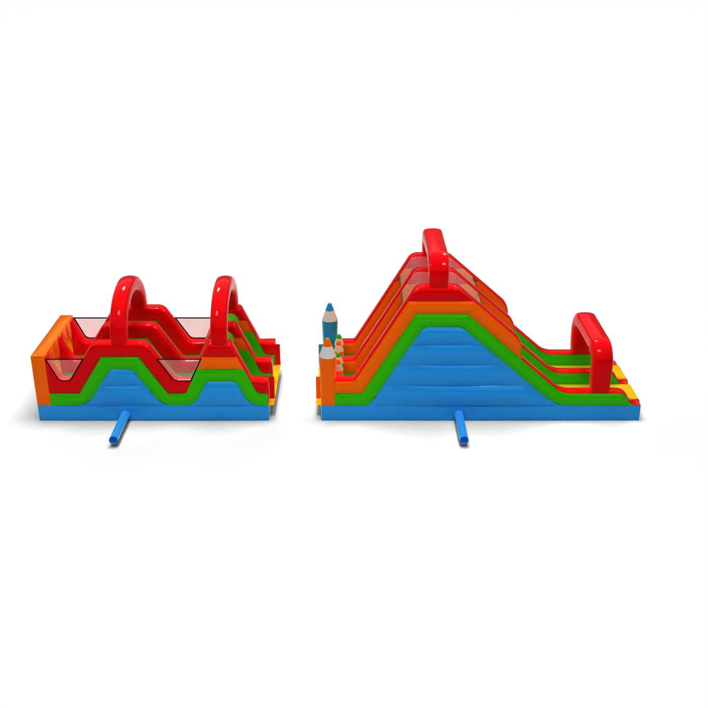 Křídová forma překážkové dráhy dodává této atrakci kreativní a odlehčený charakter, který vynikne na pozadí klasických staveb. Dynamická trasa vybízí děti k pohybu, soutěžení a aktivní hře v přátelském a barevném prostředí. Výrazné prvky ve tvaru pastelky podtrhují kreativní atmosféru a podněcují dětskou představivost. Jedná se o zajímavou nabídku pro půjčovny, které chtějí obohatit svou nabídku o překážkovou dráhu s jemnou, vzdělávací estetikou. Atrakce bude dobře fungovat na festivalech, rodinných piknicích a venkovních akcích pro děti.