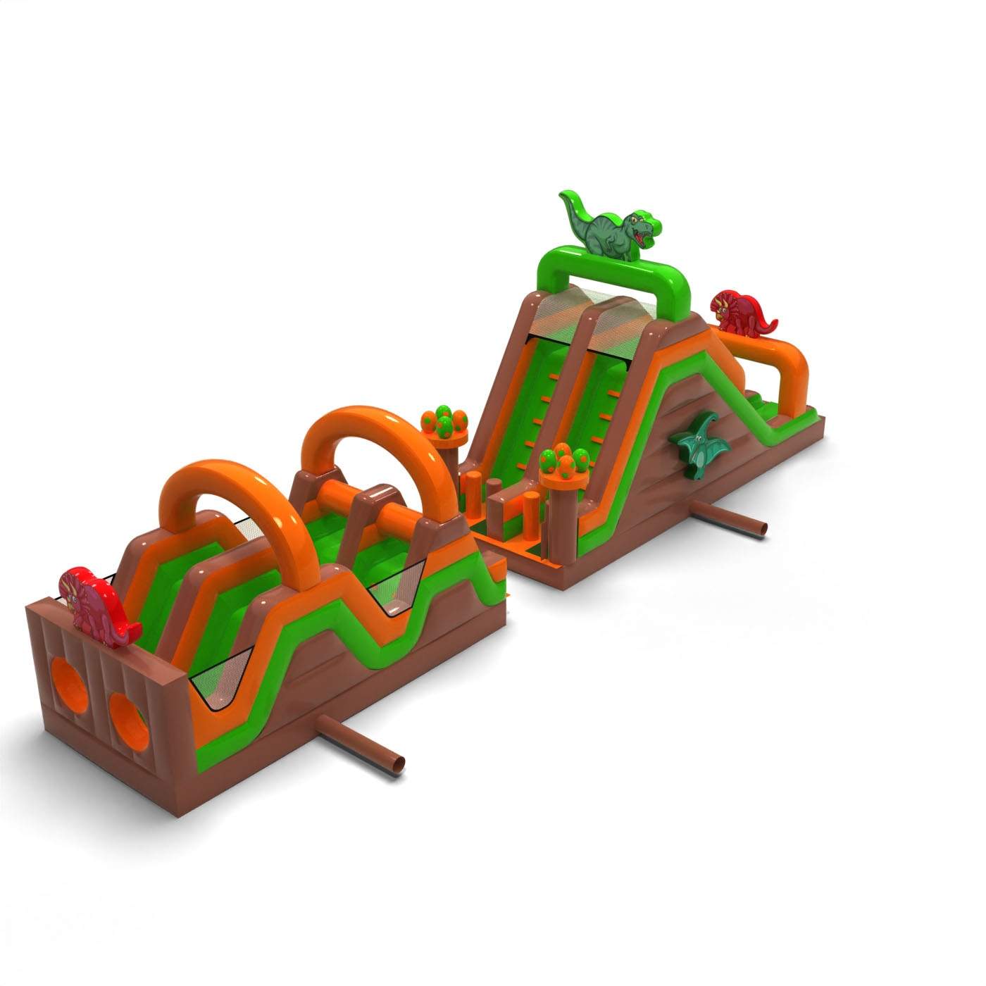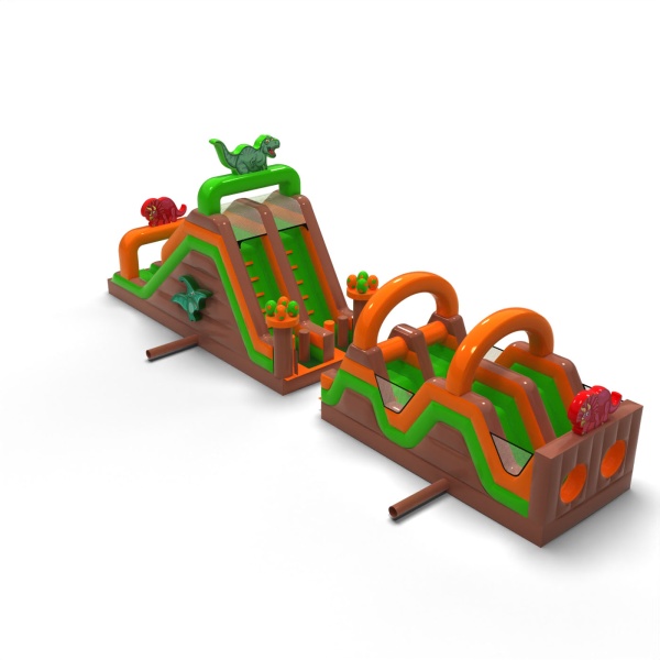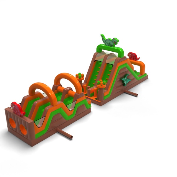 Nafukovací dino překážková dráha - 15 m je určen téměř pro každého, kdo má rád skvělou zábavu spojenou se soutěžením. Nafukovací překážková dráha byla navržena především pro mládež a dospělé, ale je vhodná také pro děti od 6 let. Téměř každý si v této atrakci najde prvky, které mu přinesou spoustu radosti při hře. Produkt doporučujeme všem, kteří chtějí probudit svého soutěživého ducha během hodin venkovní zábavy. Atrakce z této série mohou obsahovat různé prvky s odlišnou obtížností – lezení po stěně, rychlý skluz, a nakonec plazení mezi překážkami, které ztěžují co nejrychlejší zdolání trasy.