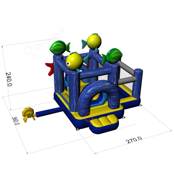 Malý skákací hrad se suchým bazénem pro děti - mořská tématika je atrakce pro všechny milovníky radostného skákání. Děti si ji naplno užívají – skáčou a vžívají se do rolí inspirovaných motivem atrakce. Malý skákací hrad se suchým bazénem pro děti - mořská tématika byla navržena nejen pro ty nejmenší. Nafukovací atrakce z této kategorie bývají bohatě zdobené a obsahují mnoho prvků, které vybízejí k aktivní zábavě na čerstvém vzduchu. Nafukovací hrady dokážou vytvořit fantastický svět zážitků při veselém skákání s přáteli a vrstevníky. Hrad lze kombinovat s dalšími produkty z naší nabídky a vytvořit tak pohádkový svět plný radosti a pohybu na celé hodiny.