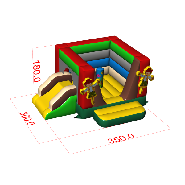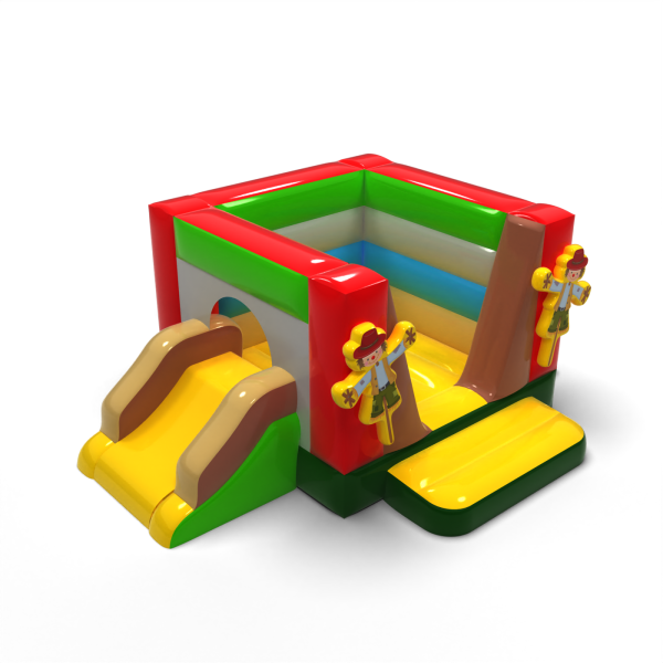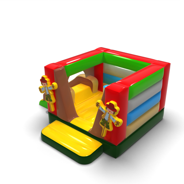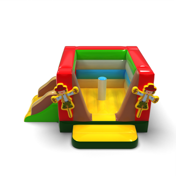 Malý skákací hrad se skluzavkou - ve farmářském stylu je atrakce pro všechny milovníky radostného skákání. Děti si ji naplno užívají – skáčou a vžívají se do rolí inspirovaných motivem atrakce. Malý skákací hrad se skluzavkou - ve farmářském stylu byla navržena nejen pro ty nejmenší. Nafukovací atrakce z této kategorie bývají bohatě zdobené a obsahují mnoho prvků, které vybízejí k aktivní zábavě na čerstvém vzduchu. Nafukovací hrady dokážou vytvořit fantastický svět zážitků při veselém skákání s přáteli a vrstevníky. Hrad lze kombinovat s dalšími produkty z naší nabídky a vytvořit tak pohádkový svět plný radosti a pohybu na celé hodiny.