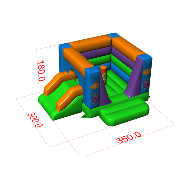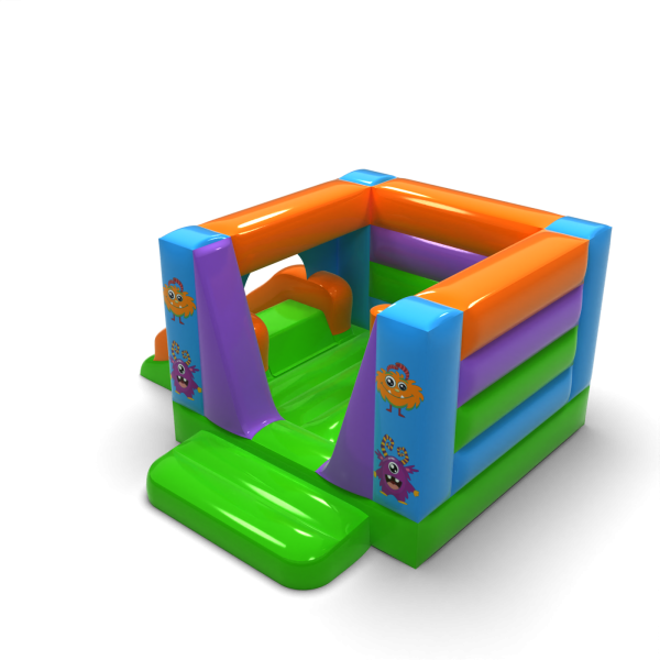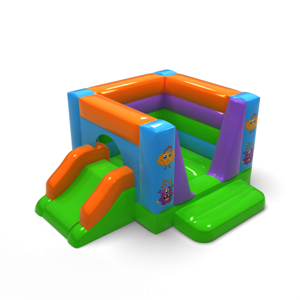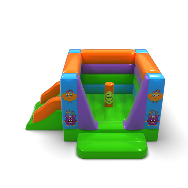 Verze se skluzavkou přináší dětem další dávku zábavy - kromě skákací plochy se mohou batolata těšit na krátkou barevnou skluzavku. Motivy usměvavých příšerek dodávají konstrukci přátelský charakter a díky malým rozměrům ji lze snadno postavit venku i uvnitř zařízení HoReCa. Jedná se o všestrannou atrakci, která obohacuje nabídku animací pro děti.