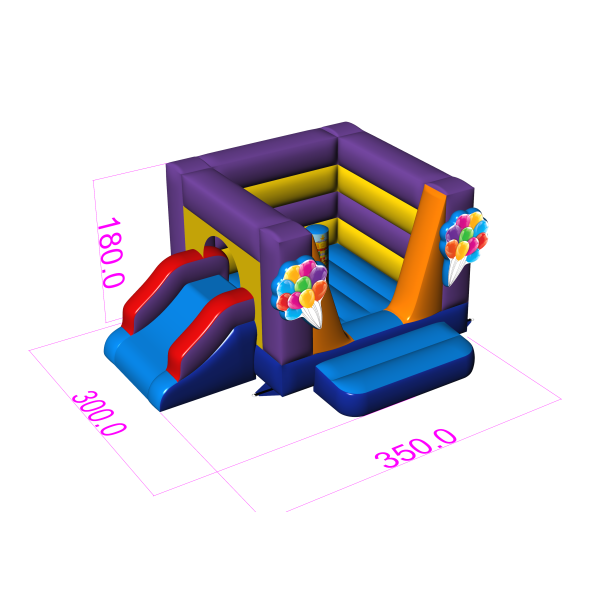 Malý skákací hrad se skluzavkou - s motivem zábavního parku je atrakce pro všechny milovníky radostného skákání. Děti si ji naplno užívají – skáčou a vžívají se do rolí inspirovaných motivem atrakce. Malý skákací hrad se skluzavkou - s motivem zábavního parku byla navržena nejen pro ty nejmenší. Nafukovací atrakce z této kategorie bývají bohatě zdobené a obsahují mnoho prvků, které vybízejí k aktivní zábavě na čerstvém vzduchu. Nafukovací hrady dokážou vytvořit fantastický svět zážitků při veselém skákání s přáteli a vrstevníky. Hrad lze kombinovat s dalšími produkty z naší nabídky a vytvořit tak pohádkový svět plný radosti a pohybu na celé hodiny.