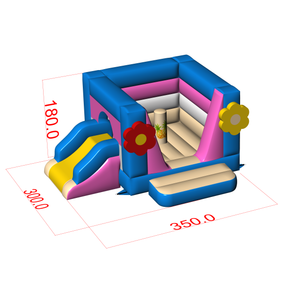 Tato malá nafukovací skluzavka s havajskou tématikou je ideální pro akce v hotelích, restauracích nebo v prostorách pro pořádání akcí. Díky nízkoprofilovému provedení lze atrakci postavit i v interiéru a barevné provedení s motivem květin dělá ze skákacího hradu atrakci, která upoutá pozornost dětí a dobře vypadá na fotografiích. Vestavěná mini skluzavka zvyšuje funkčnost atrakce, aniž by bylo potřeba více místa. Představte kompaktní atrakci, která je zábavná s minimálními nároky na prostor.
