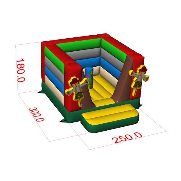 Stejně jako všechny naše nafukovací atrakce je tento produkt vyroben z vysoce kvalitních materiálů – v tomto případě z PVC nové generace s vysokou odolností proti roztržení. Malý skákací hrad s farmářským motivem má rozměry 3 m x 2,5 m x 1,8 m (délka, šířka a výška). Splňuje bezpečnostní normu ČSN EN 14960 pro nafukovací herní zařízení. Doporučujeme použití dmychadel, která jsou součástí balení. Stejně jako většina našich atrakcí je i tento nafukovací prvek kryt dvouletou zárukou. V Gangaru (dříve GunGan) dbáme na to, abyste měli co nejméně starostí – v balení najdete kompletní sadu příslušenství potřebného k upevnění atrakce (lana, kolíky). Atrakce byla ověřena z hlediska bezpečnosti nezávislým znalcem.