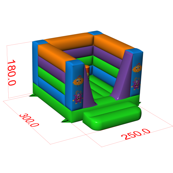 Kompaktní skákací hrad s hravými příšerkami je nabídkou, která svými barvami a veselou grafikou okamžitě upoutá pozornost dětí. Uzavřená konstrukce dodává pocit bezpečí a nízká výška umožňuje používat atrakci i v interiéru. Jedná se o praktické řešení pro hotely, restaurace nebo herny, které chtějí nabídnout aktivní zábavu pro nejmenší bez ohledu na počasí.