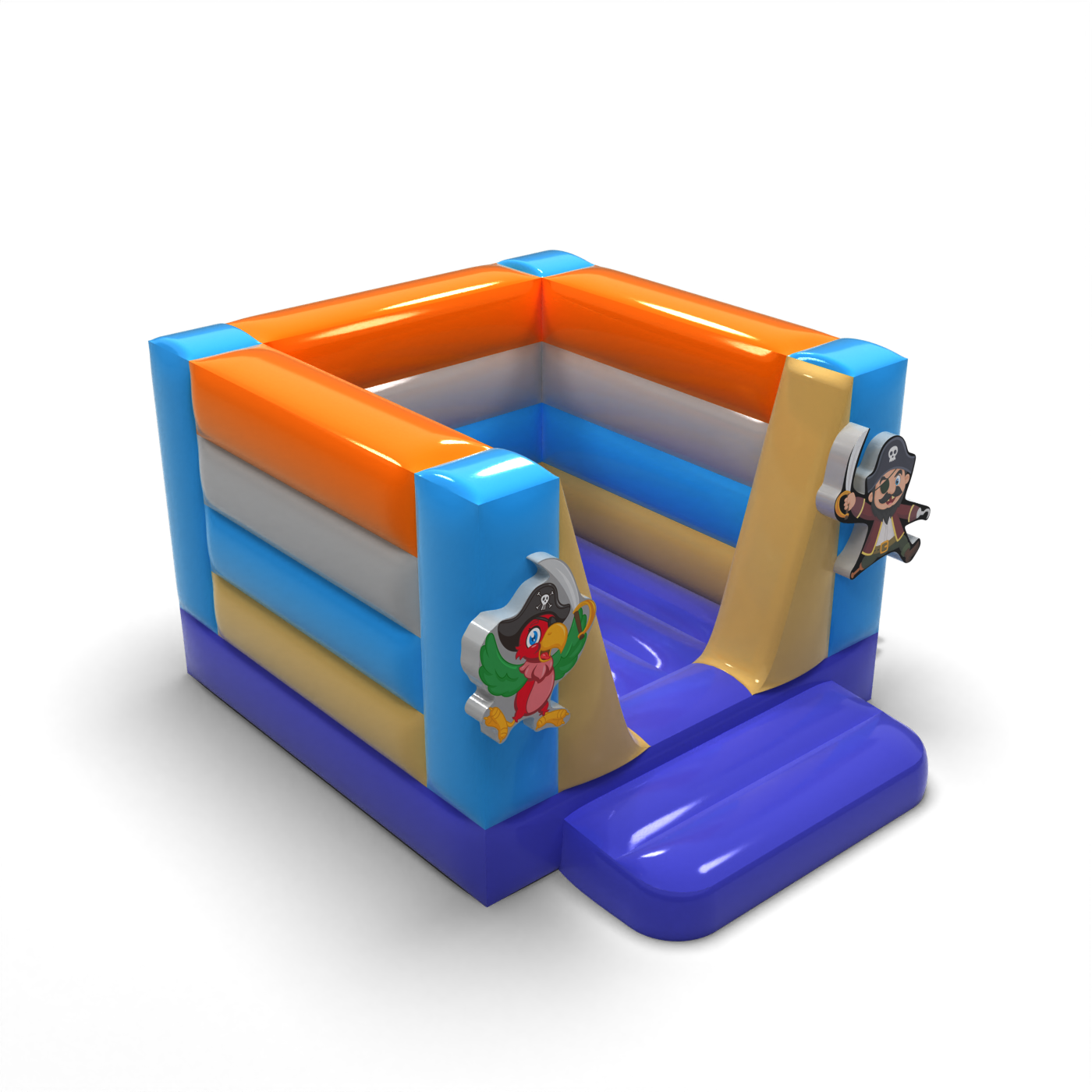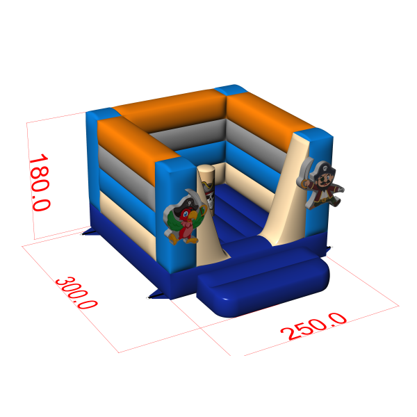 Malý skákací hrad s pirátskou tématikou je atrakce pro všechny milovníky radostného skákání. Děti si ji naplno užívají – skáčou a vžívají se do rolí inspirovaných motivem atrakce. Malý skákací hrad s pirátskou tématikou byla navržena nejen pro ty nejmenší. Nafukovací atrakce z této kategorie bývají bohatě zdobené a obsahují mnoho prvků, které vybízejí k aktivní zábavě na čerstvém vzduchu. Nafukovací hrady dokážou vytvořit fantastický svět zážitků při veselém skákání s přáteli a vrstevníky. Hrad lze kombinovat s dalšími produkty z naší nabídky a vytvořit tak pohádkový svět plný radosti a pohybu na celé hodiny.