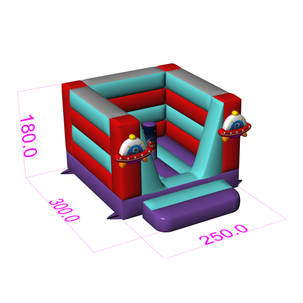 Skákací hrad s vesmírnou tématikou je kompaktní atrakce, která je ideální pro hotely, letoviska a komorní rodinné akce. Barevný design a doplňky související s UFO přitahují pozornost dětí a dodávají prostoru jedinečný charakter. Uzavřená konstrukce poskytuje bezpečné prostředí pro hraní a nízká výška umožňuje i použití v interiéru. Zajistěte si moderní ústřední bod, který můžete snadno přizpůsobit různým scénářům akcí.