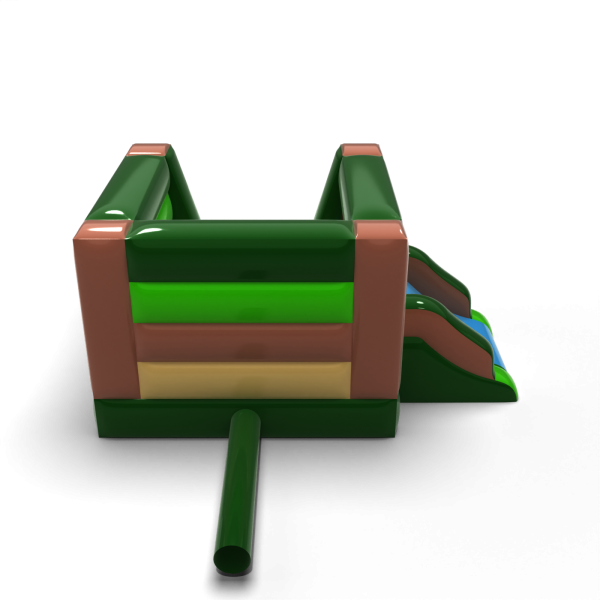 Malý skákací hrad se skluzavkou - s motivem lesa je atrakce pro všechny milovníky radostného skákání. Děti si ji naplno užívají – skáčou a vžívají se do rolí inspirovaných motivem atrakce. Malý skákací hrad se skluzavkou - s motivem lesa byla navržena nejen pro ty nejmenší. Nafukovací atrakce z této kategorie bývají bohatě zdobené a obsahují mnoho prvků, které vybízejí k aktivní zábavě na čerstvém vzduchu. Nafukovací hrady dokážou vytvořit fantastický svět zážitků při veselém skákání s přáteli a vrstevníky. Hrad lze kombinovat s dalšími produkty z naší nabídky a vytvořit tak pohádkový svět plný radosti a pohybu na celé hodiny.