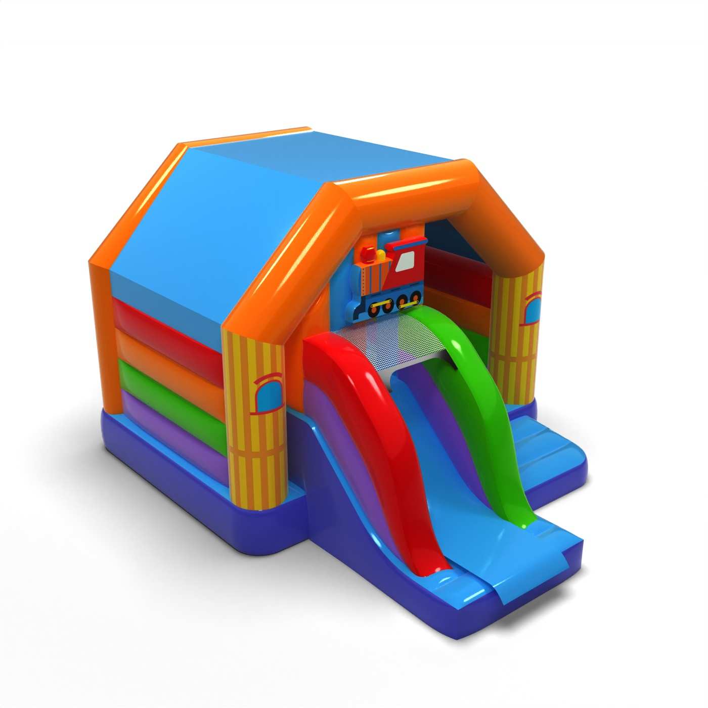 Rozšířená forma inspirovaná zábavním parkem vytváří působivý centrální hrací prostor plný barev a energie. Kombinace skákání a klouzání podněcuje děti, aby zůstaly aktivní a užívaly si atrakce déle. Bohaté vizuální zpracování umocňuje slavnostní charakter akce a účinně přitahuje pozornost již z dálky. Jedná se o návrh pro pořadatele, kteří chtějí do dětského areálu vnést výrazný efektní prvek. Atrakce se ideálně hodí na velké pikniky, festivaly a městské akce, kde záleží na efektu, radosti a intenzivní zábavě.