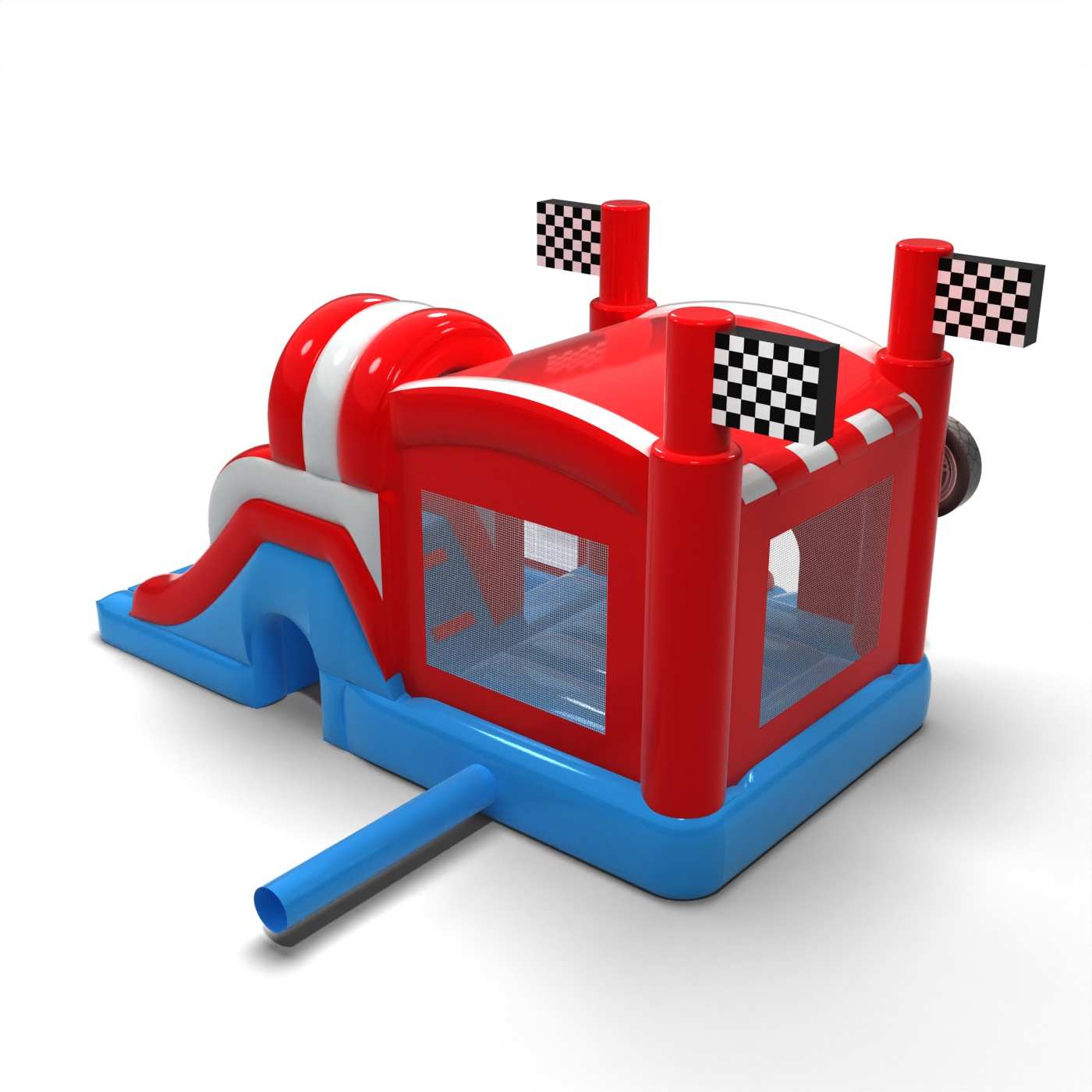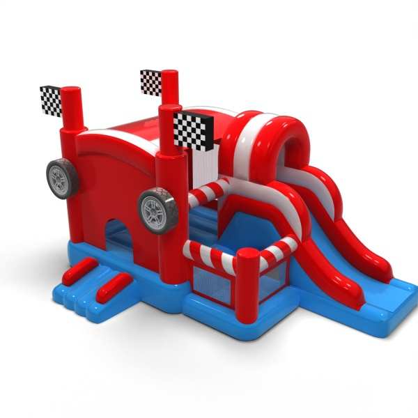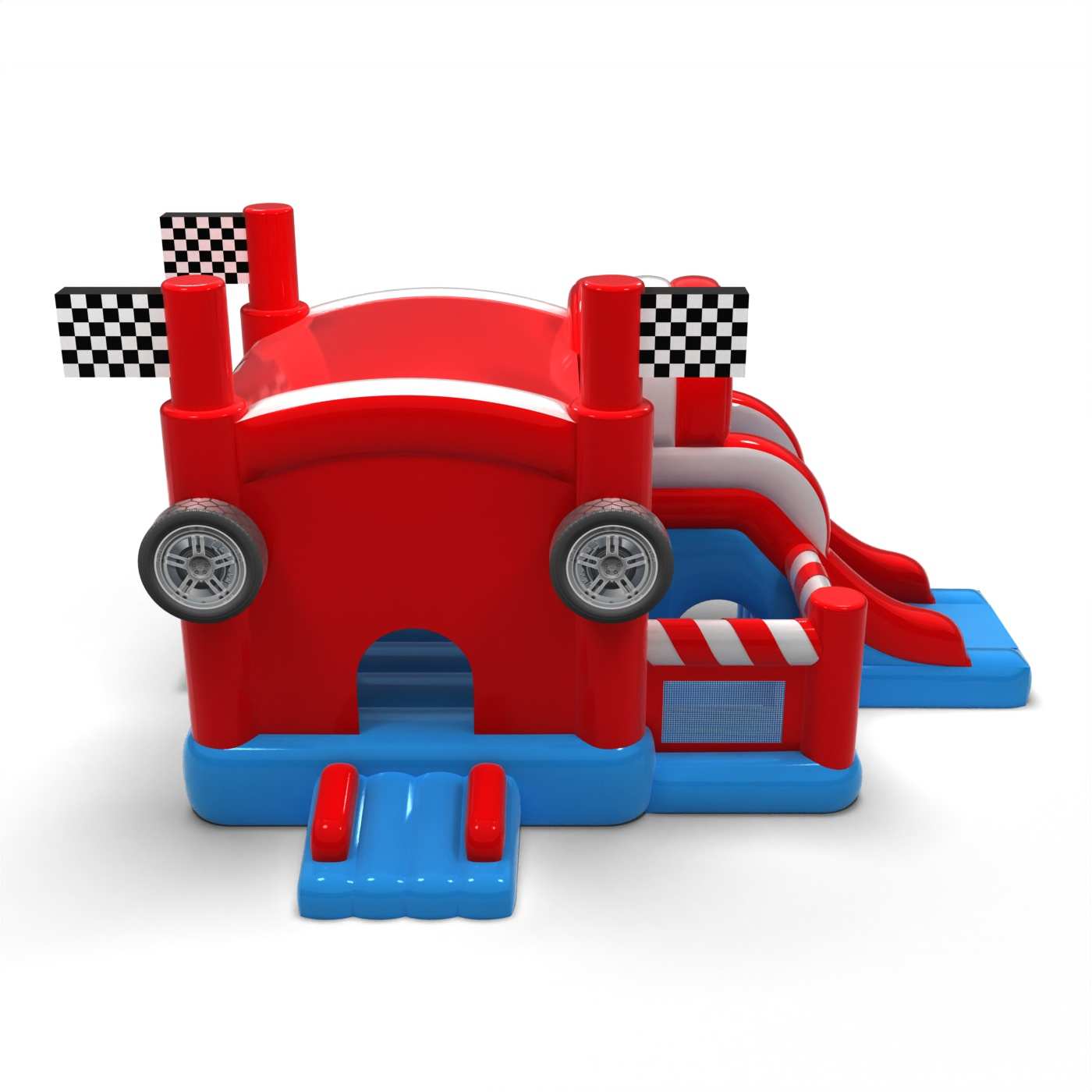 Kombinovaný skákací hrad s motivem auta je atrakce pro všechny milovníky radostného skákání. Děti si ji naplno užívají – skáčou a vžívají se do rolí inspirovaných motivem atrakce. Kombinovaný skákací hrad s motivem auta byla navržena nejen pro ty nejmenší. Nafukovací atrakce z této kategorie bývají bohatě zdobené a obsahují mnoho prvků, které vybízejí k aktivní zábavě na čerstvém vzduchu. Nafukovací hrady dokážou vytvořit fantastický svět zážitků při veselém skákání s přáteli a vrstevníky. Hrad lze kombinovat s dalšími produkty z naší nabídky a vytvořit tak pohádkový svět plný radosti a pohybu na celé hodiny.