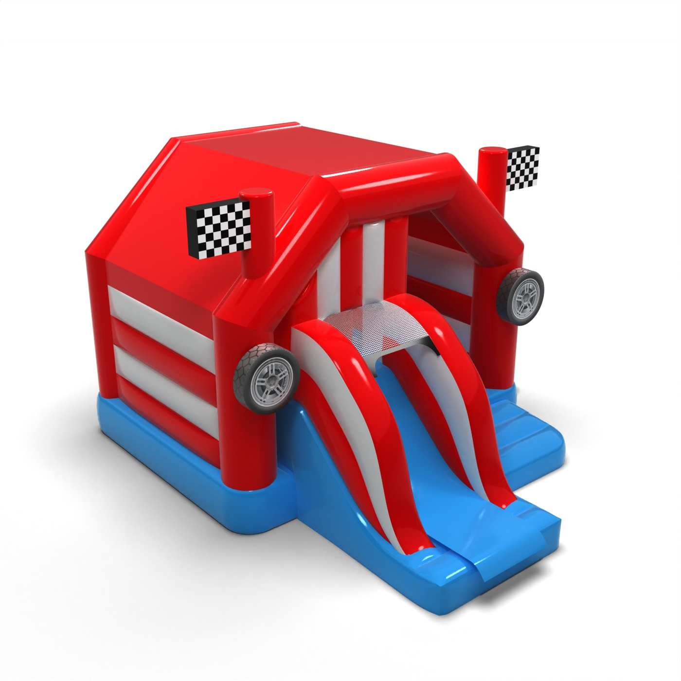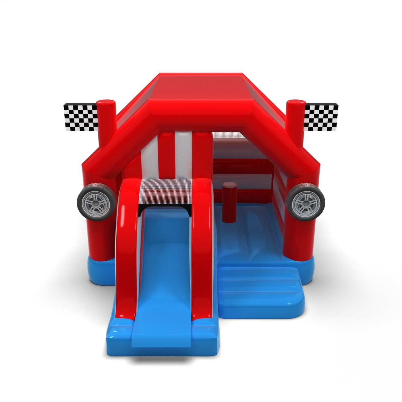 Forma inspirovaná závodní jámou vytváří výrazný a dynamický hrací prostor plný pohybu a energie. Kombinace skákací plochy se skluzavkou podněcuje děti k aktivitě a soutěživosti bezpečnou a hravou formou. Automobilový design přitahuje pozornost a okamžitě budí asociace se světem závodů. Je určen pro pořadatele, kteří chtějí dětskému areálu dodat výrazně sportovní nádech. Atrakce je ideální pro festivaly, rodinné pikniky a tematické venkovní akce.