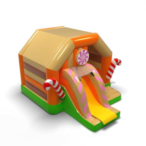 Pruhovaná chaloupka ve tvaru bonbónku vytváří přátelský pohádkový prostor plný pastelových barev. Kombinace skákání a klouzání vybízí děti k pohybu a volné aktivitě v rámci jedné atrakce. Sladké vizuální provedení je poutavé a buduje atmosféru bezstarostné zábavy. Je určena pro pořadatele, kteří chtějí dětskou zónu odlišit něžným, veselým motivem. Atrakce je ideální pro narozeninové oslavy, rodinné slavnosti a venkovní animace pro nejmenší děti.
