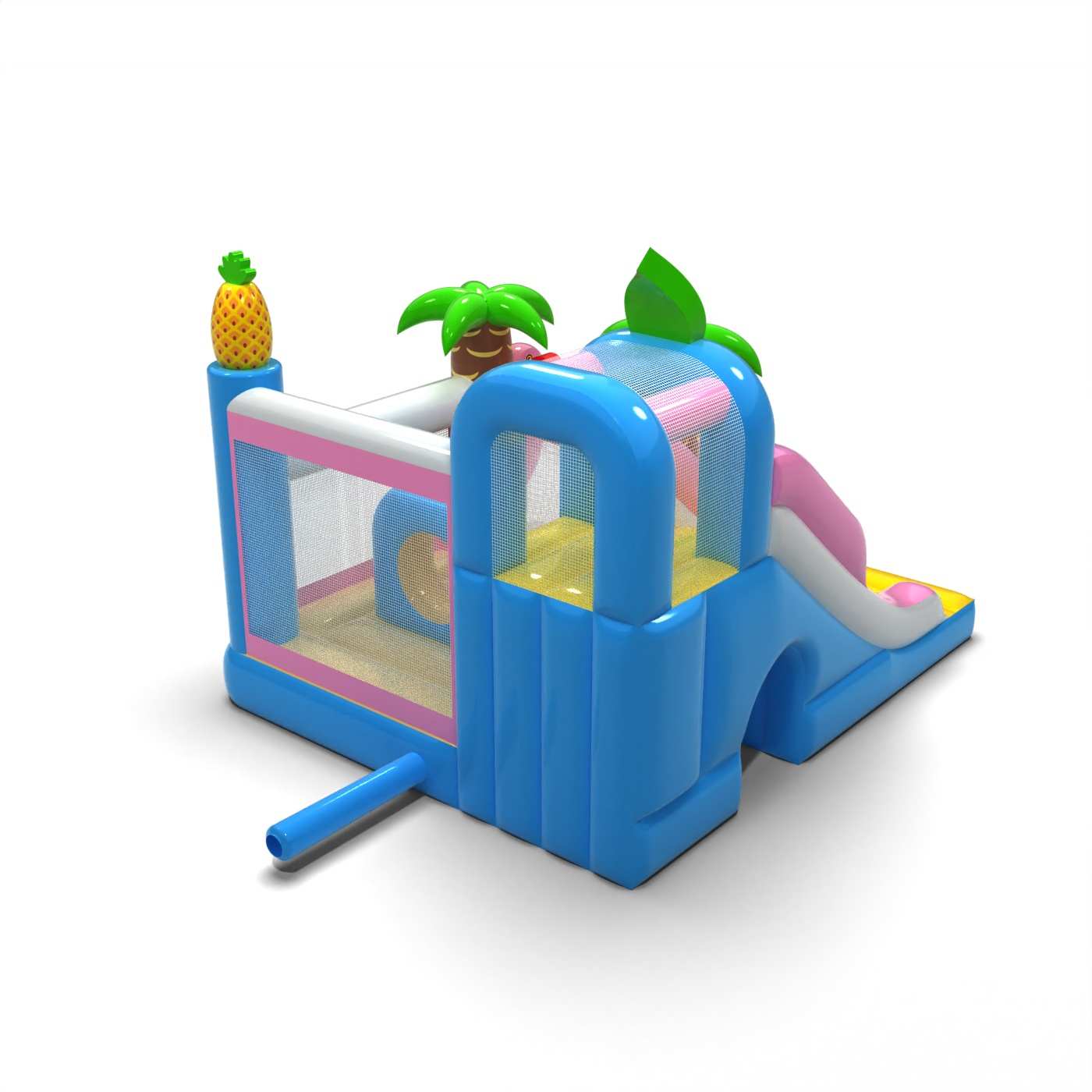 Havajský skákací hrad combo je atrakce pro všechny milovníky radostného skákání. Děti si ji naplno užívají – skáčou a vžívají se do rolí inspirovaných motivem atrakce. Havajský skákací hrad combo byla navržena nejen pro ty nejmenší. Nafukovací atrakce z této kategorie bývají bohatě zdobené a obsahují mnoho prvků, které vybízejí k aktivní zábavě na čerstvém vzduchu. Nafukovací hrady dokážou vytvořit fantastický svět zážitků při veselém skákání s přáteli a vrstevníky. Hrad lze kombinovat s dalšími produkty z naší nabídky a vytvořit tak pohádkový svět plný radosti a pohybu na celé hodiny.