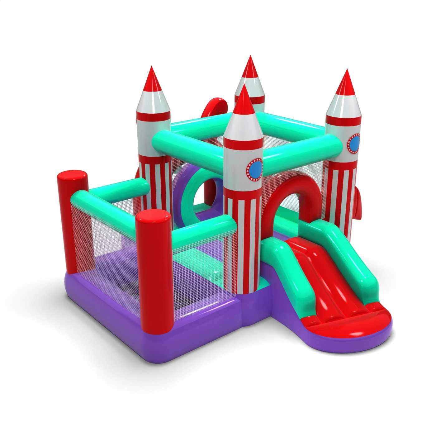 K výrobě nafukovacích atrakcí používáme odolné materiály: TPU nebo PVC, které se vyznačují nadprůměrnou odolností proti roztržení a relativně nízkou hmotností.