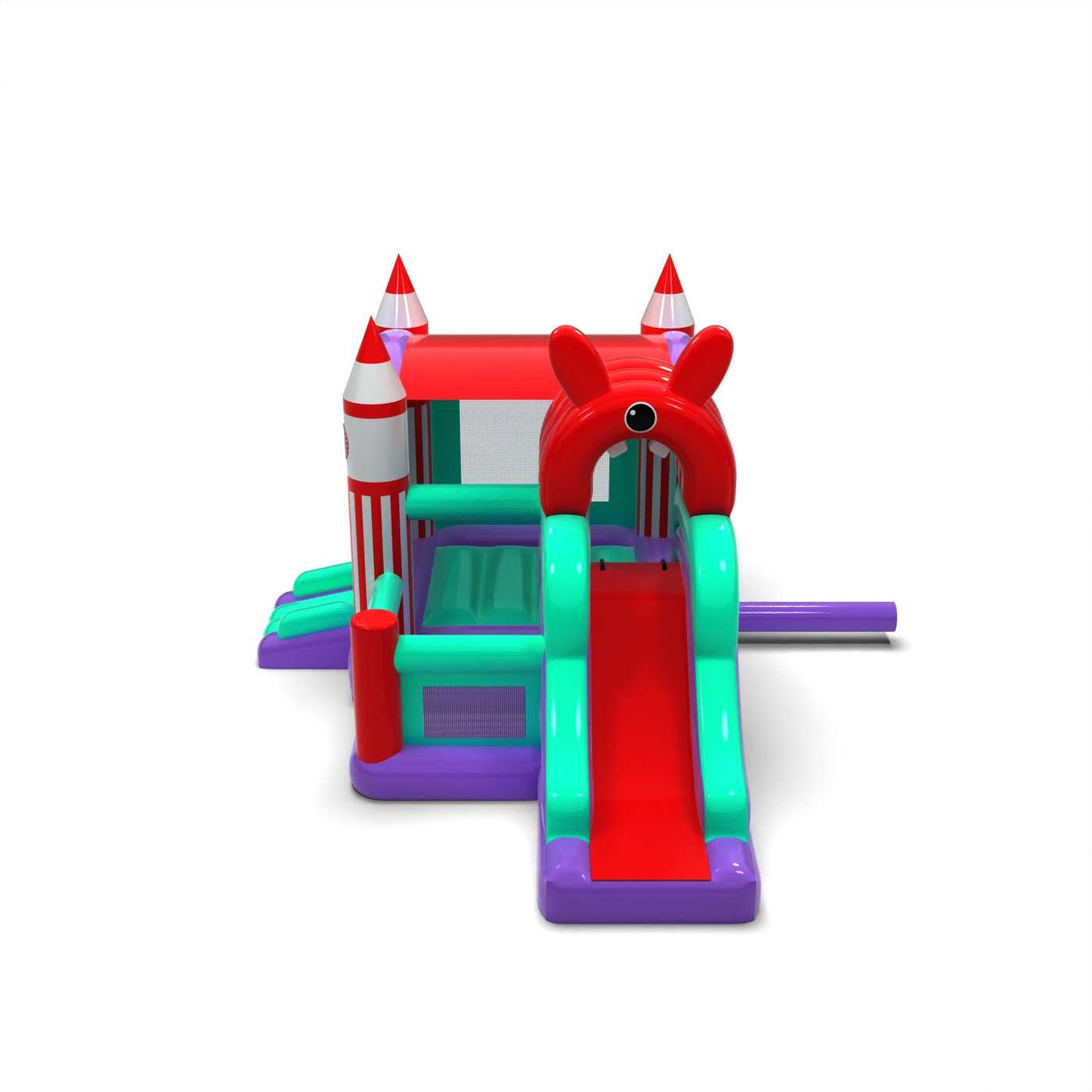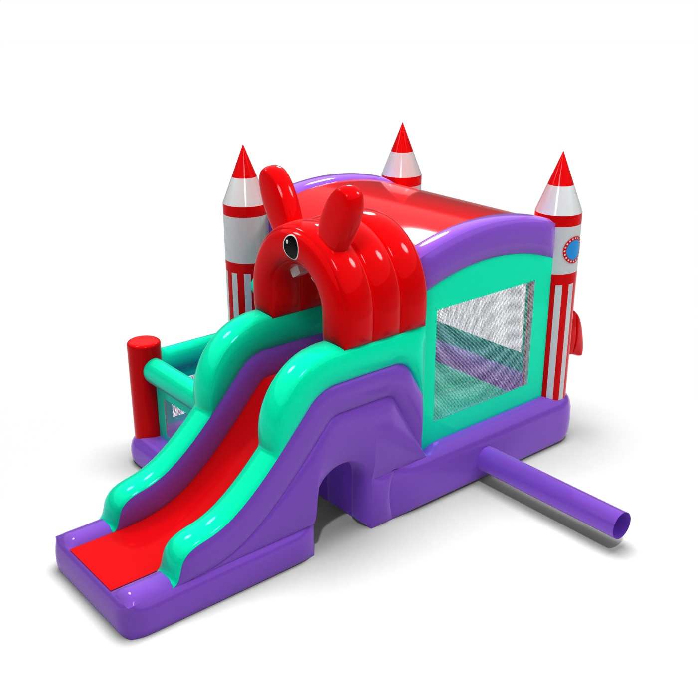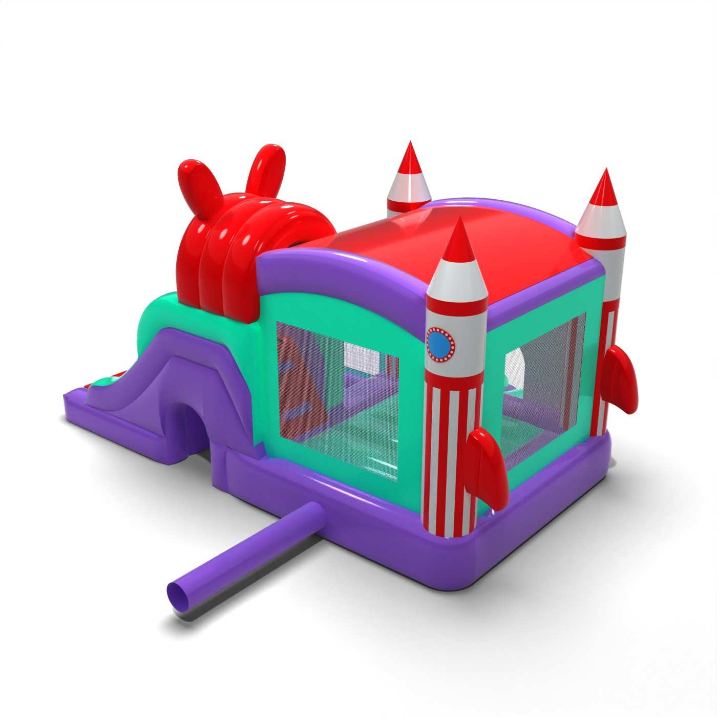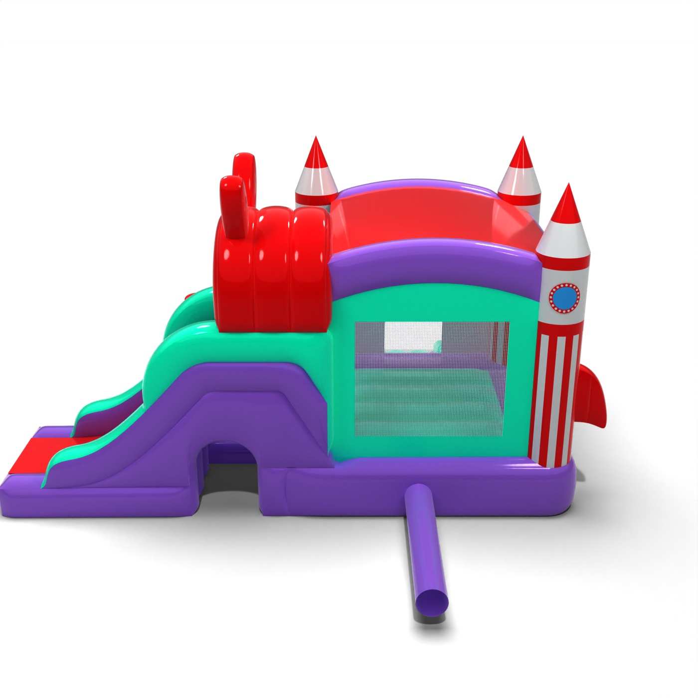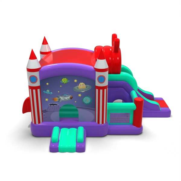 Kombinovaný skákací hrad s vesmírným motivem je atrakce pro všechny milovníky radostného skákání. Děti si ji naplno užívají – skáčou a vžívají se do rolí inspirovaných motivem atrakce. Kombinovaný skákací hrad s vesmírným motivem byla navržena nejen pro ty nejmenší. Nafukovací atrakce z této kategorie bývají bohatě zdobené a obsahují mnoho prvků, které vybízejí k aktivní zábavě na čerstvém vzduchu. Nafukovací hrady dokážou vytvořit fantastický svět zážitků při veselém skákání s přáteli a vrstevníky. Hrad lze kombinovat s dalšími produkty z naší nabídky a vytvořit tak pohádkový svět plný radosti a pohybu na celé hodiny.
