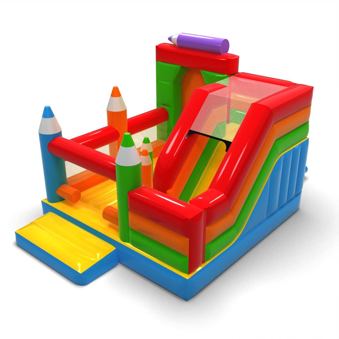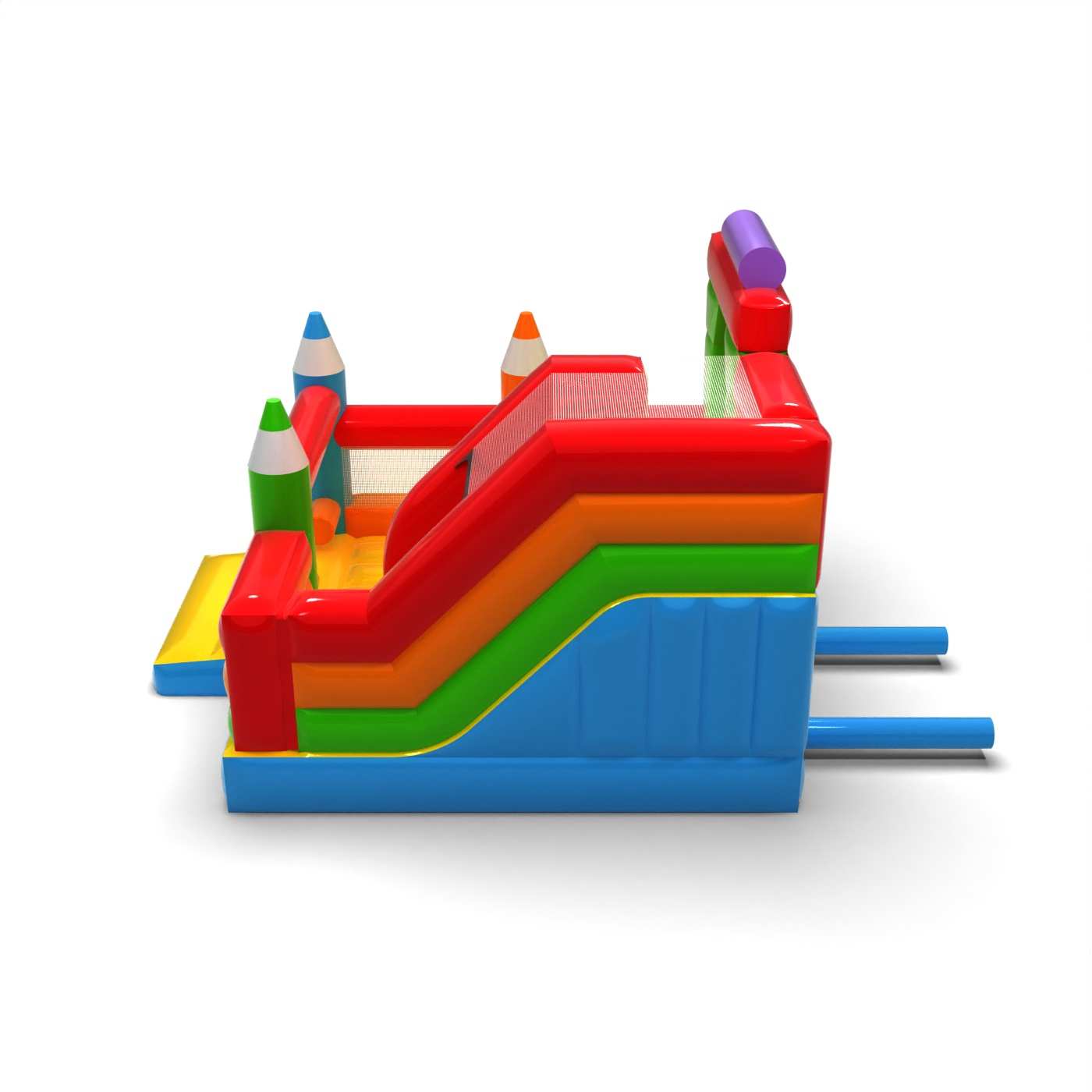 Nafukovačka se skluzavkou - kombinace pastelka je atrakce pro všechny milovníky radostného skákání. Děti si ji naplno užívají – skáčou a vžívají se do rolí inspirovaných motivem atrakce. Nafukovačka se skluzavkou - kombinace pastelka byla navržena nejen pro ty nejmenší. Nafukovací atrakce z této kategorie bývají bohatě zdobené a obsahují mnoho prvků, které vybízejí k aktivní zábavě na čerstvém vzduchu. Nafukovací hrady dokážou vytvořit fantastický svět zážitků při veselém skákání s přáteli a vrstevníky. Hrad lze kombinovat s dalšími produkty z naší nabídky a vytvořit tak pohádkový svět plný radosti a pohybu na celé hodiny.