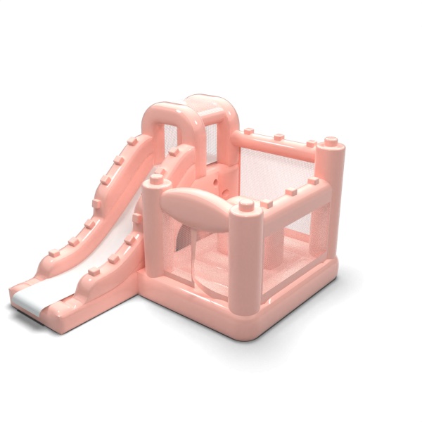 Malý skákací hrad se skluzavkou pro děti - pastelově růžový