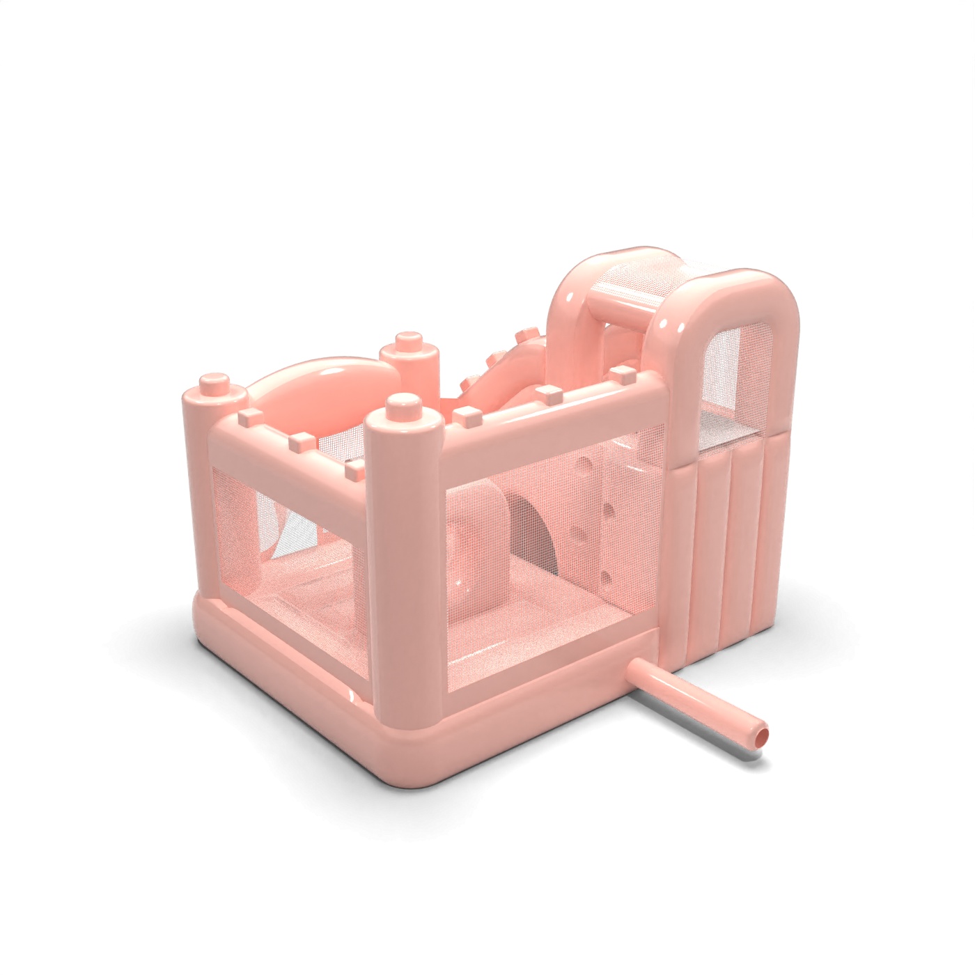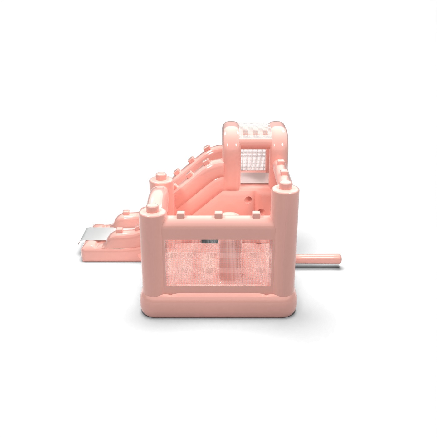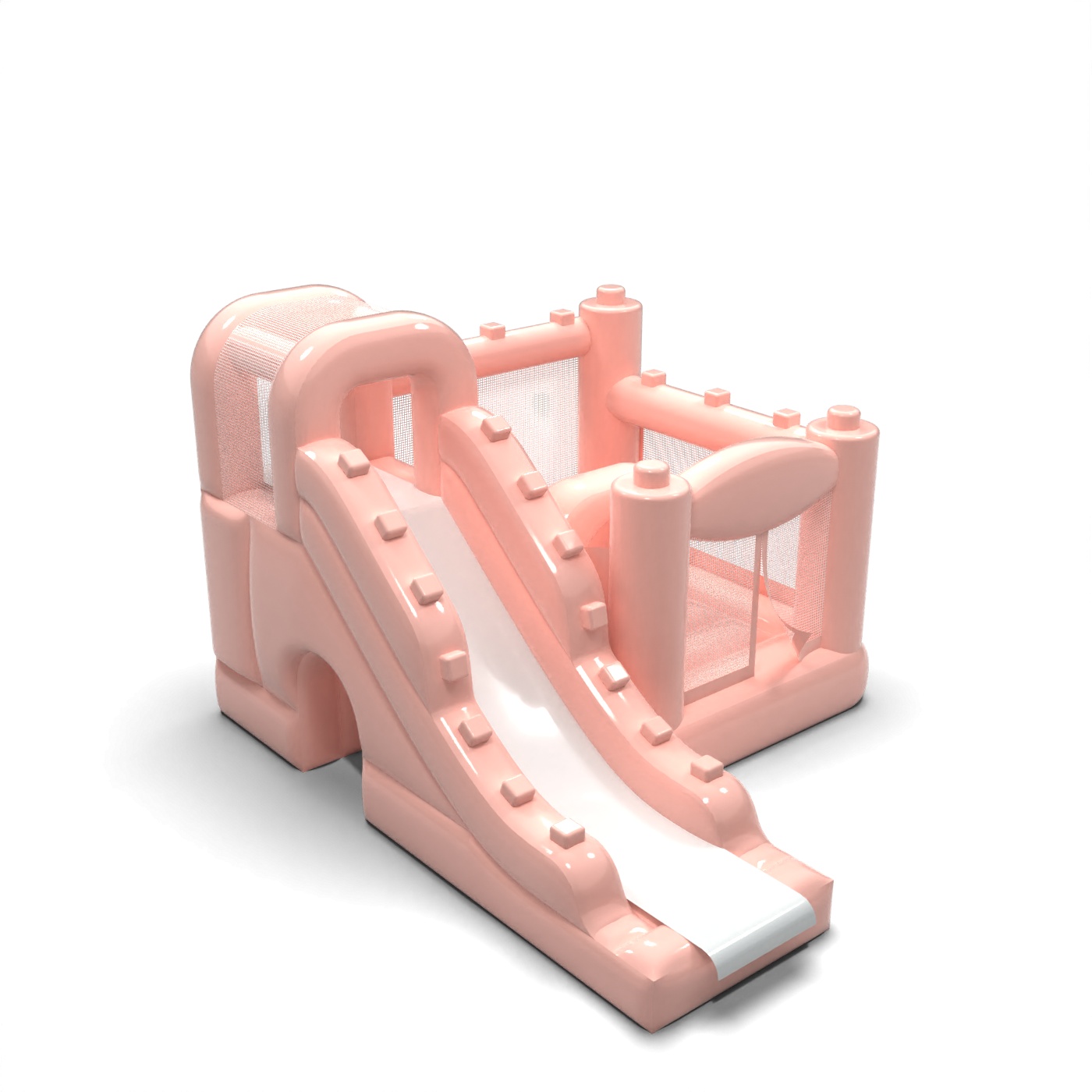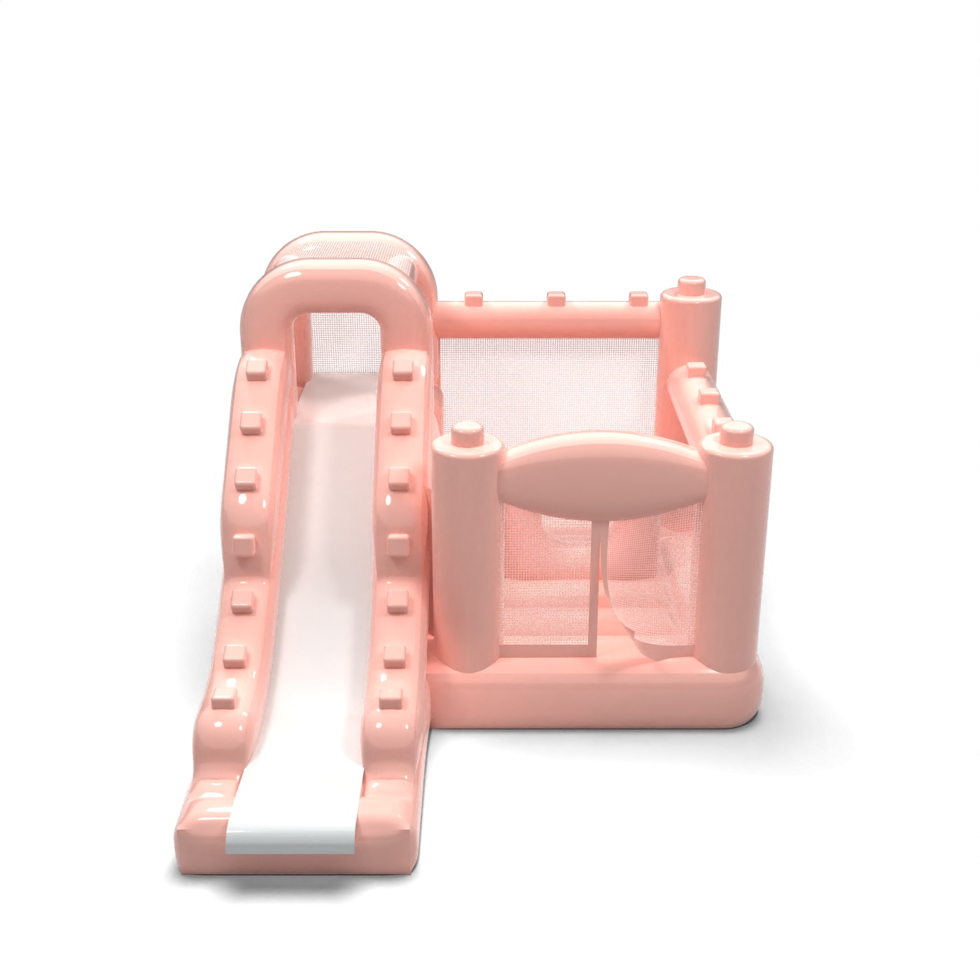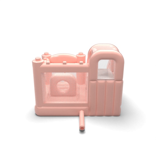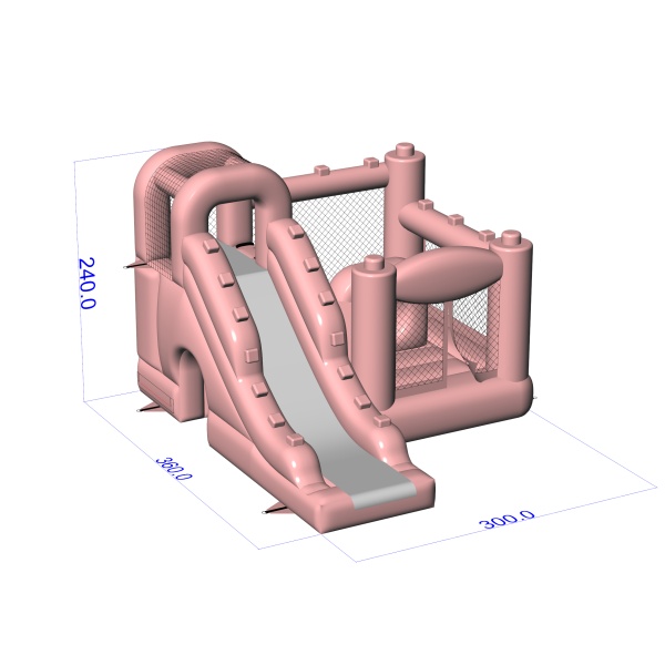 Kompaktní design kombinující skákací plochu a skluzavku v jedné jednotce vytváří funkční hrací prostor vhodný pro menší sídliště. Pastelově růžová barva dodává atrakci lehký, estetický charakter, který se dobře kombinuje s balónkovými dekoracemi a aranžmá rodinných oslav. Uzavřené boční strany ze síťoviny umožňují snadnou kontrolu nad zábavou a zvyšují pohodlí pořadatele. Tento model je obzvláště praktický pro pronájmy zajišťující zahradní oslavy narozenin, přijímací večírky a komorní soukromé akce. Atrakce se nejlépe osvědčí tam, kde je důležitá estetika, bezpečnost a rychlá instalace v omezeném prostoru.