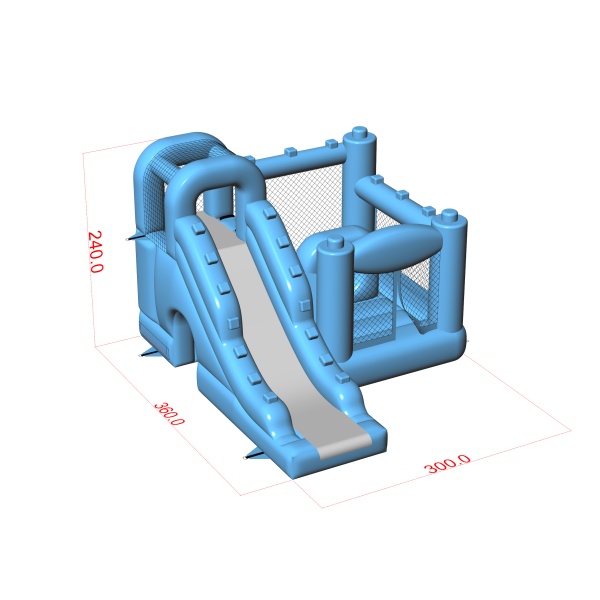 Pastelově modrá barva dodává této atrakci svěží, neutrální vzhled, který lze snadno sladit s různými vizuálními koncepty událostí. Konstrukce s jedním tělesem kombinující skákání a klouzání umožňuje dětem nafukovací atrakci aktivně využívat, aniž by bylo nutné rozdělovat prostor na několik zón. Promyšlené uspořádání vstupu a výstupu podporuje plynulé střídání účastníků během akce. Jedná se o praktickou možnost pro společnosti pořádající akce a půjčovny zajišťující soukromé oslavy i menší B2B produkce. Atrakce se bude dobře hodit pro firemní pikniky, dětské dny a akce pořádané v polootevřených prostorách a pod stříškou.