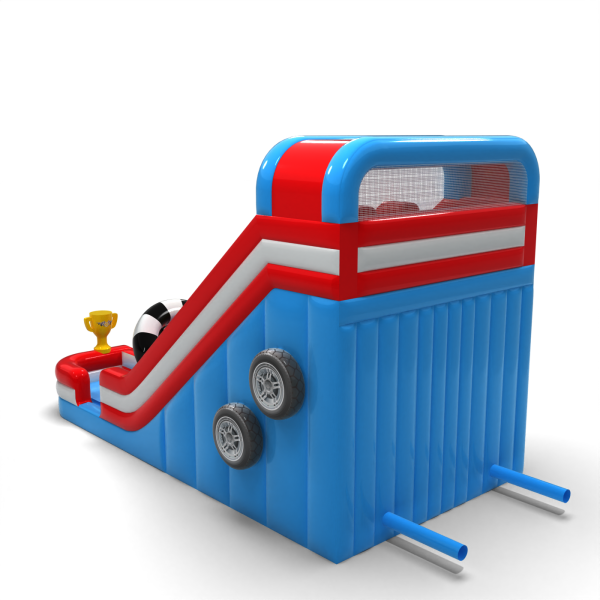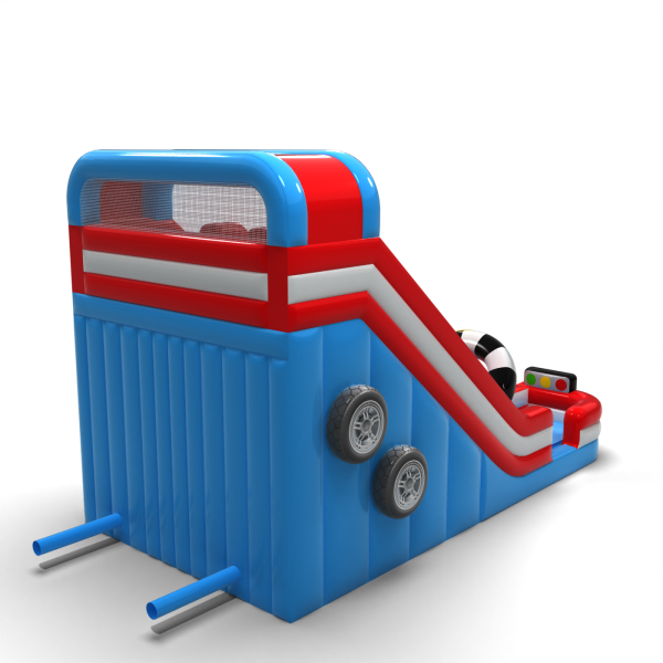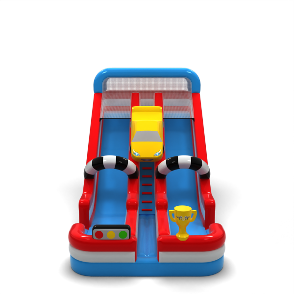 Dvojitá zvětšená nafukovací skluzavka s motivem auta je fantastická nafukovací atrakce pro děti a mládež. Skvěle doplní naši nabídku dalších atrakcí v různých tematických provedeních. Dvojitá zvětšená nafukovací skluzavka s motivem auta okamžitě přitáhne pozornost dětí, jakmile se objeví v jejich zorném poli. Nejmenší účastníci akcí milují zábavu, a proto se tato skluzavka může stát jednou z nejoblíbenějších atrakcí ve vaší nabídce. Nafukovací atrakce z této kategorie jsou výrazné, často zdobené množstvím prvků, které vybízejí ke skákání a aktivnímu pohybu na čerstvém vzduchu.