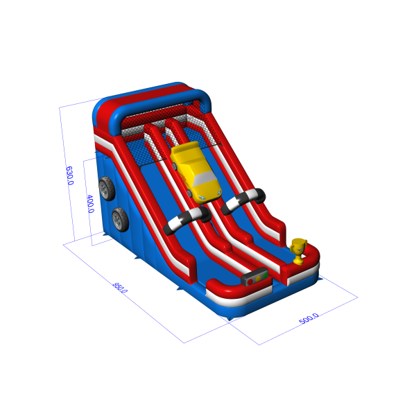 Dvojitá zvětšená nafukovací skluzavka s motivem auta