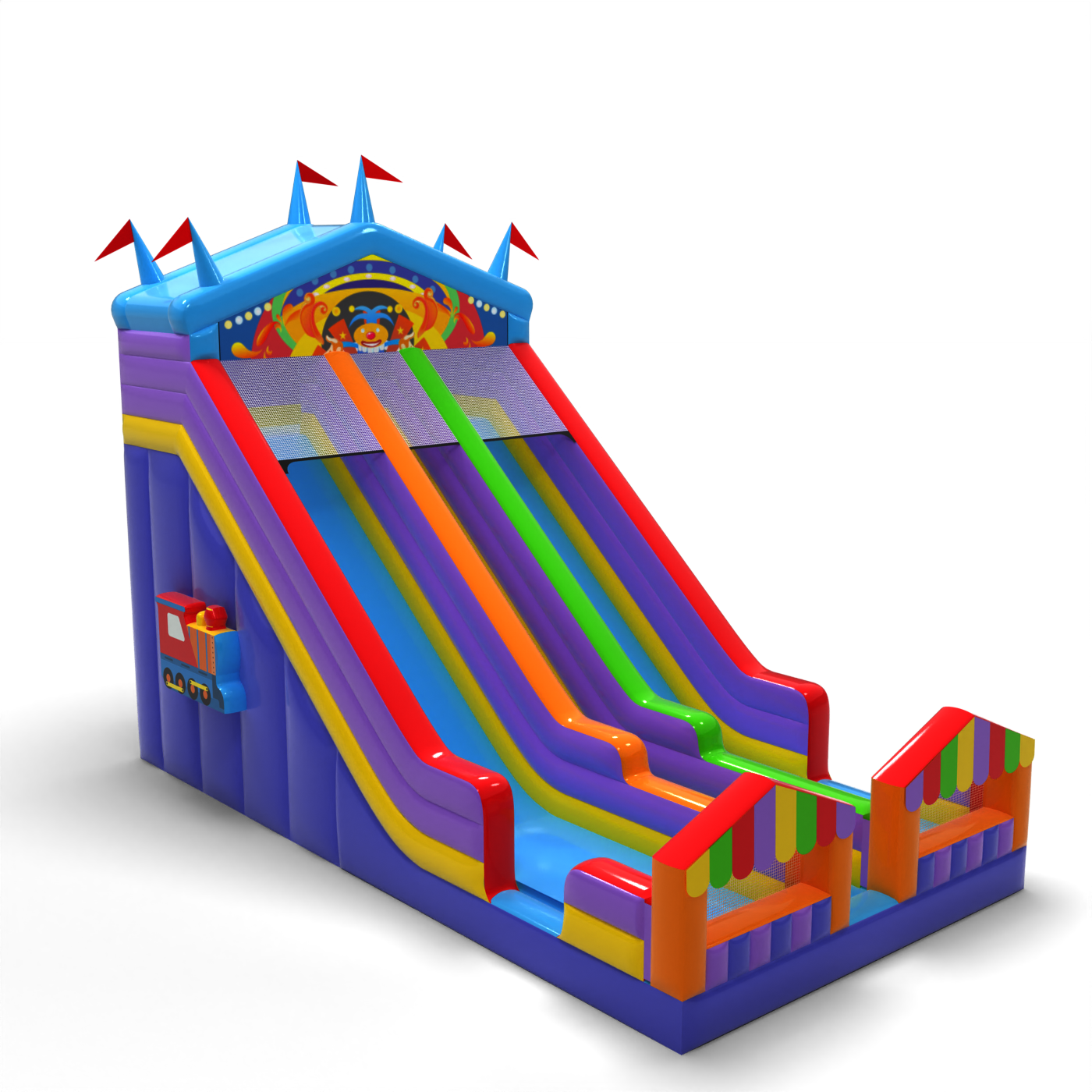Dvojitá zvětšená nafukovací skluzavka s motivem lunaparku