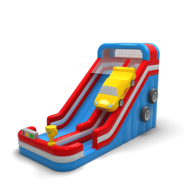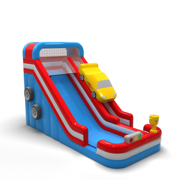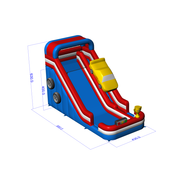 Zvětšená nafukovací skluzavka s motivem auta