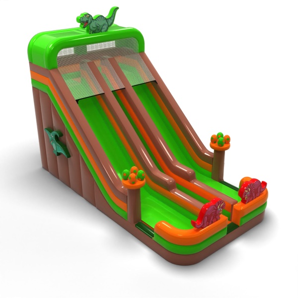 Dvojitá zvětšená nafukovací skluzavka s motivem dinosaurů