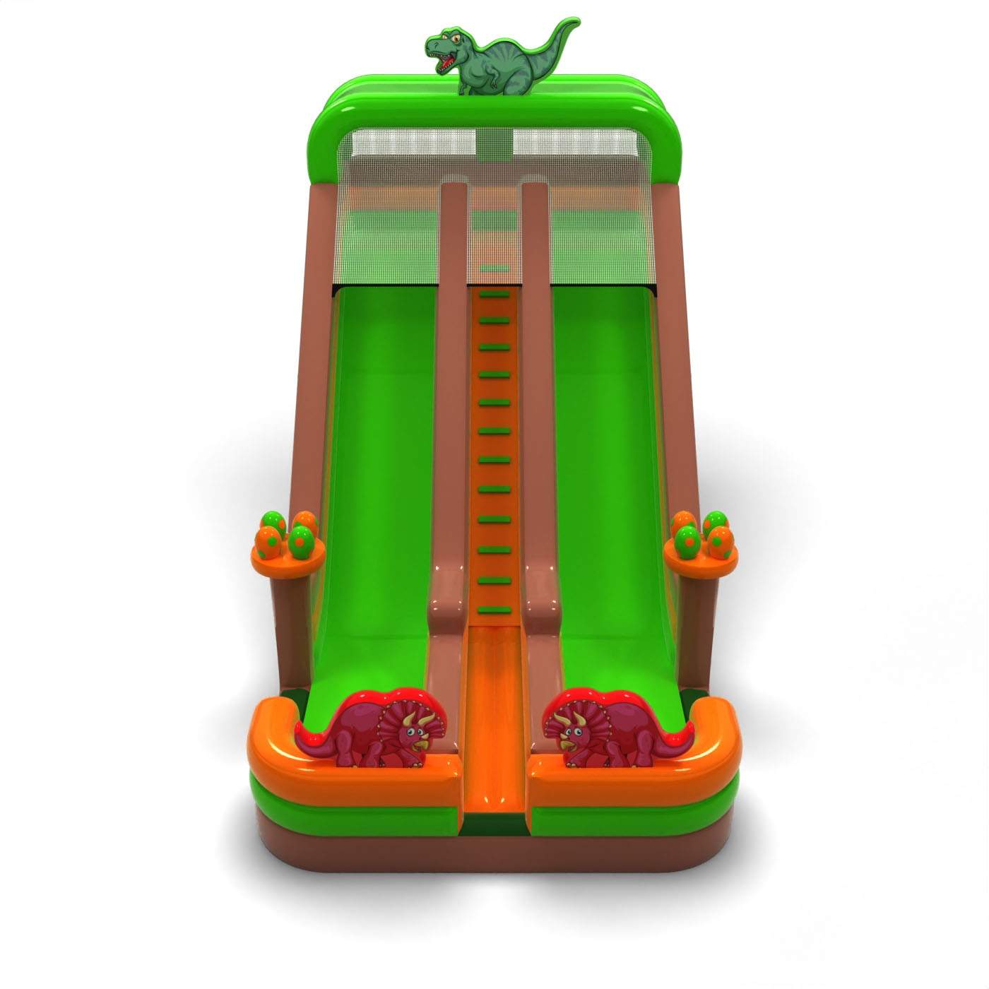 Stejně jako všechny naše nafukovací atrakce je tento produkt vyroben z vysoce kvalitních materiálů – v tomto případě z PVC nové generace s vysokou odolností proti roztržení. Dvojitá zvětšená nafukovací skluzavka s motivem dinosaurů má rozměry 9,5 m, 5 m, 7,2 m (délka, šířka a výška). Splňuje bezpečnostní normu ČSN EN 14960 pro nafukovací herní zařízení. Doporučujeme použití dmychadel, která jsou součástí dodávané sady. Stejně jako většina našich atrakcí je i tato nafukovací atrakce kryta dvouletou zárukou. V Gangaru (dříve GunGan) se staráme o to, abyste měli co nejméně starostí – součástí balení je kompletní sada příslušenství pro upevnění atrakce (lana, kolíky). Atrakce byla prověřena nezávislým znalcem z hlediska bezpečnosti.