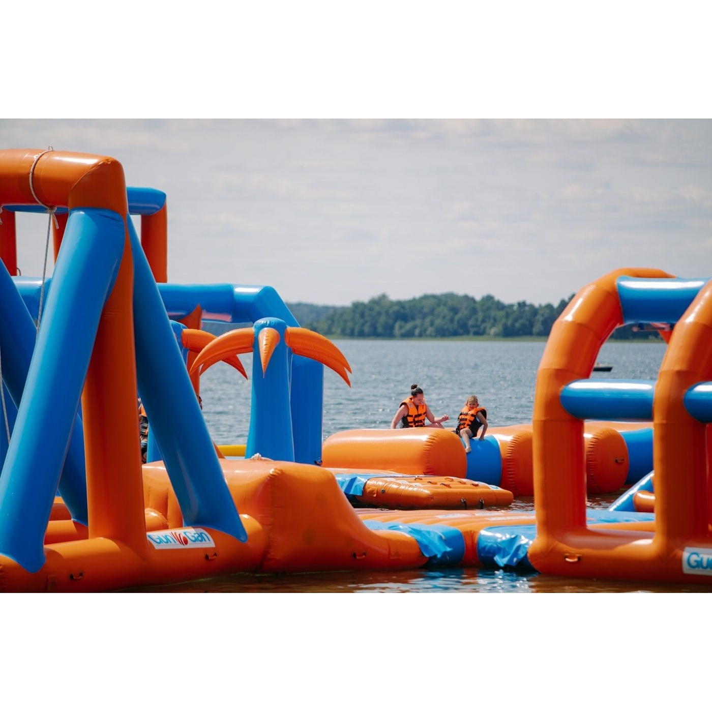 Nafukovací vodní park lze rozšířit o další překážkové dráhy, bójky, lezecké stěny a skluzavky. Nafukovací park můžete dále zatraktivnit balančními podložkami, nafukovacími polštáři, mosty, žebříky a mnoha dalšími prvky. Každý návštěvník parku by měl mít na sobě plovací vestu. Bohatě vybavený nafukovací vodní park pojme až 75 osob najednou! Vytvářejte skupiny, měřte časy, závoďte s přáteli a známými. Nafukovací vodní park je zcela bezpečný. Z případných pádů nemusíte mít vůbec strach – materiál je pružný a velmi měkký. Nafukovací vodní park je ideální řešení pro velké tematické akce. Skvěle se osvědčí také jako hlavní atrakce letních táborů. Vyberte si náš produkt a hrajte si celé hodiny. Nafukovací atrakce jsou k dispozici v různých barevných provedeních. Díky různým tvarům a provedením nafukovacího vodního parku se čas strávený na něm stane nezapomenutelným zážitkem. Nemůžeme vám zaručit dobré počasí, ale zaručíme nafukovací atrakce špičkové kvality, které přilákají zákazníky.