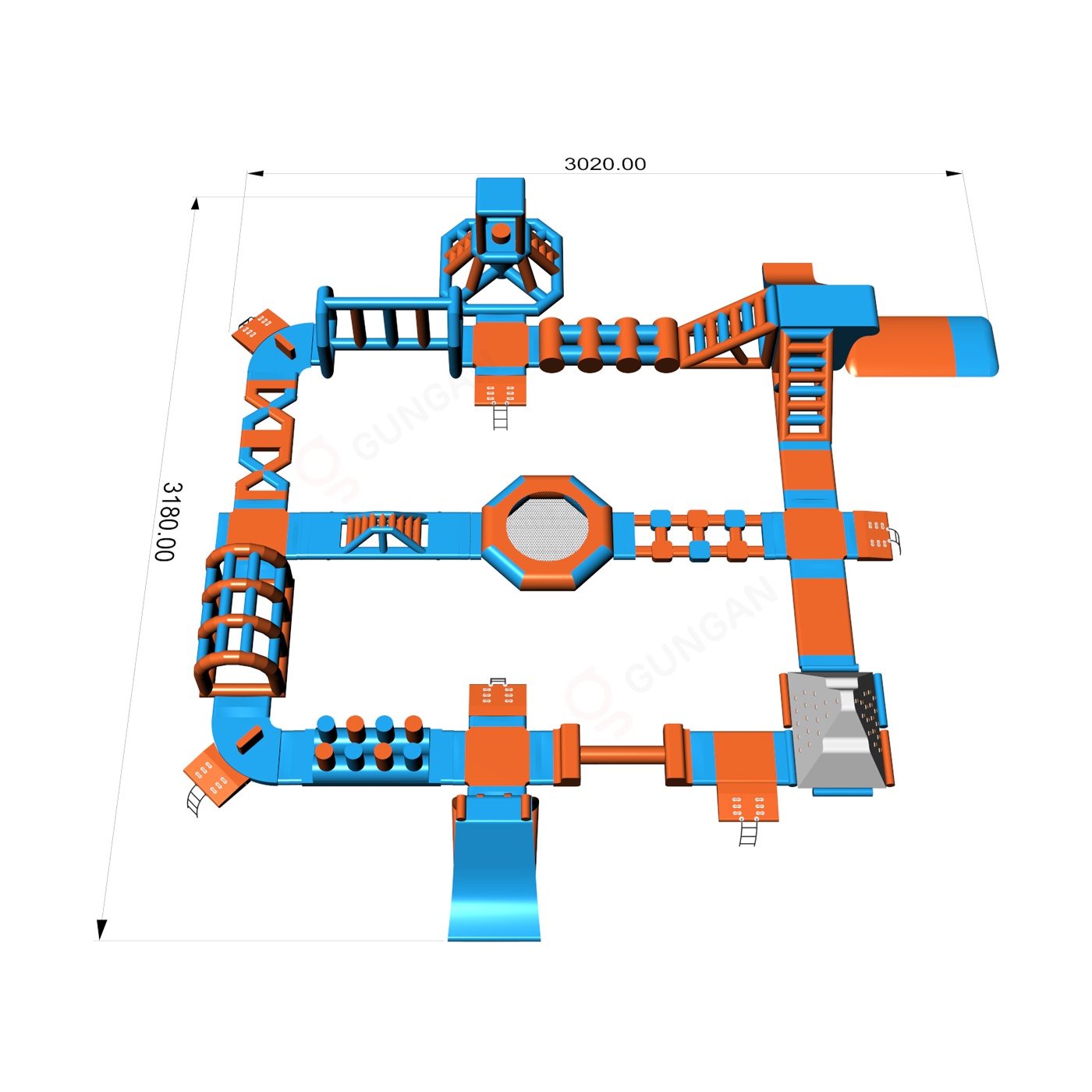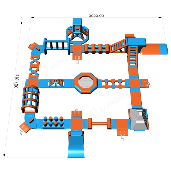 Nafukovací vodní park Zeta (32 x 30 m) nabízí nezapomenutelné zážitky na dlouhé letní dny. Výrobky z této kategorie jsou naprostým hitem pro všechny věkové skupiny, od těch nejmenších až po dospělé milovníky vodních hrátek. Nafukovací vodní parky lze navíc rozšířit o další skluzavky. Dovolená u vody se může proměnit v řadu skvělých dobrodružství a honiček v nafukovacím vodním parku. Vyzkoušejte si překážkové dráhy, zdolejte opičí dráhu a zavěste se těsně nad vodní hladinou. Vyskočte pomocí velkého nafukovacího polštáře.Nafukovací vodní park Zeta (32 x 30 m) je ideální řešení, jak smysluplně využít vodní plochu. Nafukovací vodní park je plně mobilní, skládací a přenosný. S každou novou sezónou můžete svůj nafukovací vodní park rozšířit o nové prvky. Proč investovat do nafukovacího vodního parku pro děti a mládež? S takovou atrakcí vyjdete vstříc zákazníkům, kteří se v horkých dnech touží ochladit. Různorodé překážky vám umožní vytvořit atrakci, které zákazníci nebudou schopni odolat a na které se díky její pestrosti rozhodně nebudou nudit. Pořádejte soutěže pro začátečníky i pokročilé. Díky nafukovacím vodním parkům bezpečně zabavíte své děti na dlouhé hodiny. Rodiče a pečovatelé si tak mohou přímo u nafukovacího vodního parku skvěle odpočinout.