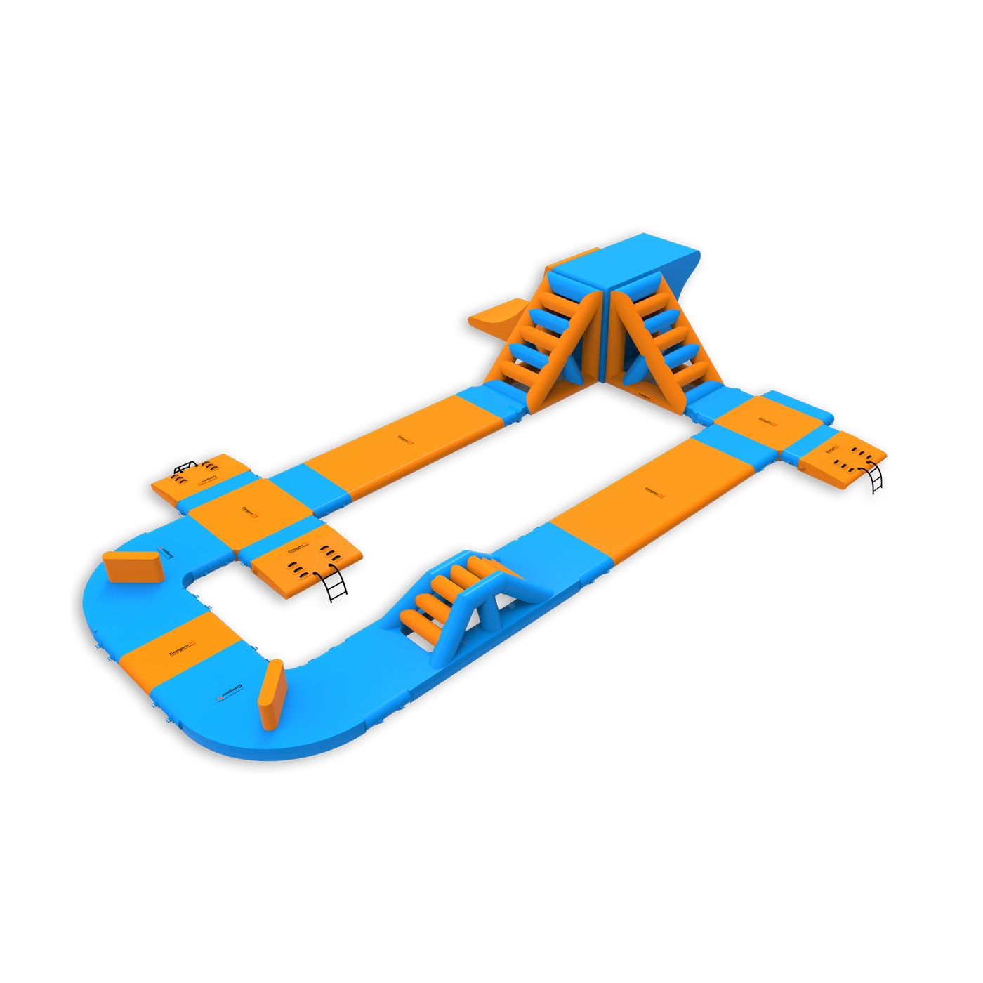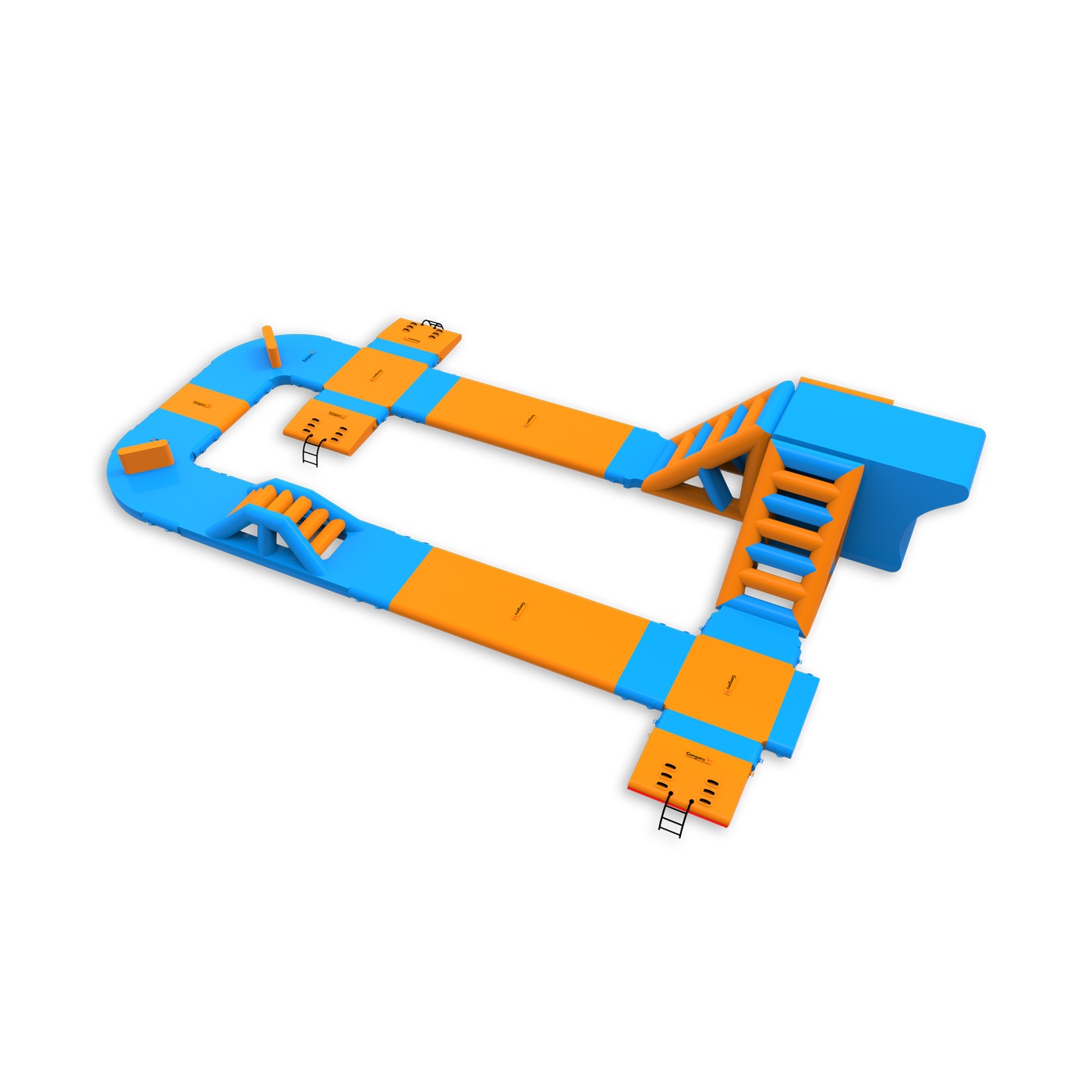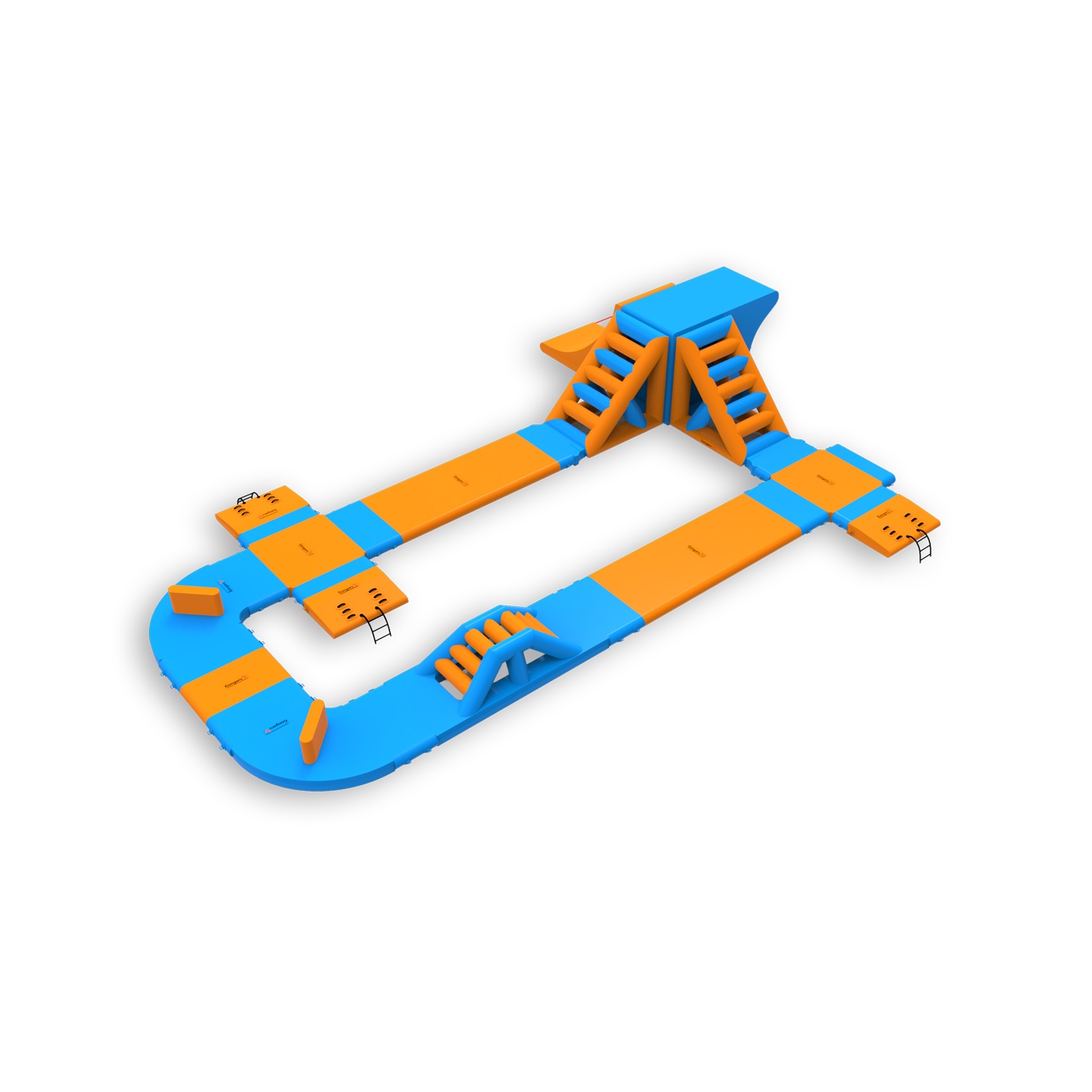 Nafukovací vodní park Eta (19 x 13 m) nabízí nezapomenutelné zážitky na dlouhé letní dny. Výrobky z této kategorie jsou naprostým hitem pro všechny věkové skupiny, od těch nejmenších až po dospělé milovníky vodních hrátek. Nafukovací vodní parky lze navíc rozšířit o další skluzavky. Dovolená u vody se může proměnit v řadu skvělých dobrodružství a honiček v nafukovacím vodním parku. Vyzkoušejte si překážkové dráhy, zdolejte opičí dráhu a zavěste se těsně nad vodní hladinou. Vyskočte pomocí velkého nafukovacího polštáře.Nafukovací vodní park Eta (19 x 13 m) je ideální řešení, jak smysluplně využít vodní plochu. Nafukovací vodní park je plně mobilní, skládací a přenosný. S každou novou sezónou můžete svůj nafukovací vodní park rozšířit o nové prvky. Proč investovat do nafukovacího vodního parku pro děti a mládež? S takovou atrakcí vyjdete vstříc zákazníkům, kteří se v horkých dnech touží ochladit. Různorodé překážky vám umožní vytvořit atrakci, které zákazníci nebudou schopni odolat a na které se díky její pestrosti rozhodně nebudou nudit. Pořádejte soutěže pro začátečníky i pokročilé. Díky nafukovacím vodním parkům bezpečně zabavíte své děti na dlouhé hodiny. Rodiče a pečovatelé si tak mohou přímo u nafukovacího vodního parku skvěle odpočinout.