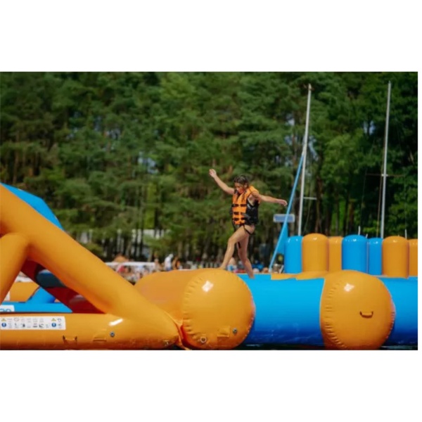 Nafukovací vodní park lze rozšířit o další překážkové dráhy, bójky, lezecké stěny a skluzavky. Nafukovací park můžete dále zatraktivnit balančními podložkami, nafukovacími polštáři, mosty, žebříky a mnoha dalšími prvky. Každý návštěvník parku by měl mít na sobě plovací vestu. Bohatě vybavený nafukovací vodní park pojme až 75 osob najednou! Vytvářejte skupiny, měřte časy, závoďte s přáteli a známými. Nafukovací vodní park je zcela bezpečný. Z případných pádů nemusíte mít vůbec strach – materiál je pružný a velmi měkký. Nafukovací vodní park je ideální řešení pro velké tematické akce. Skvěle se osvědčí také jako hlavní atrakce letních táborů. Vyberte si náš produkt a hrajte si celé hodiny. Nafukovací atrakce jsou k dispozici v různých barevných provedeních. Díky různým tvarům a provedením nafukovacího vodního parku se čas strávený na něm stane nezapomenutelným zážitkem. Nemůžeme vám zaručit dobré počasí, ale zaručíme nafukovací atrakce špičkové kvality, které přilákají zákazníky.