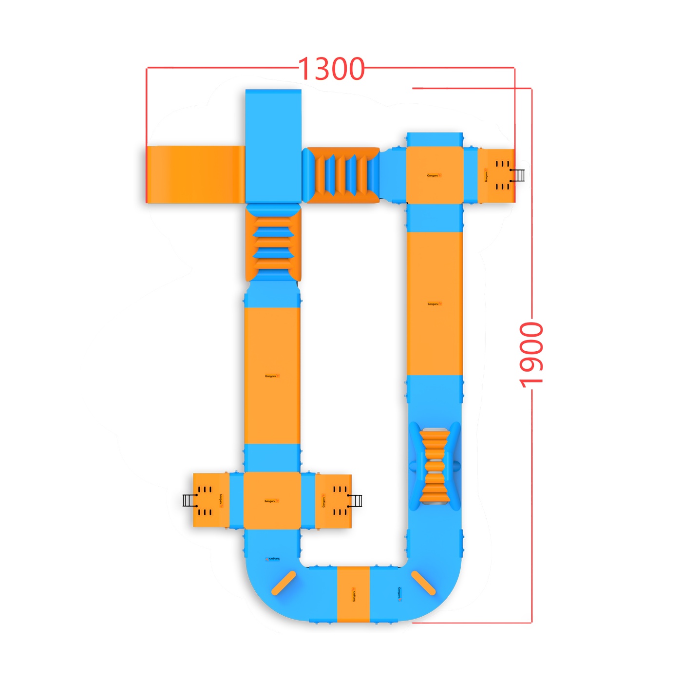 Stejně jako všechny naše nafukovací atrakce je výrobek vyroben z vysoce kvalitních materiálů, v tomto případě z PVC nové generace s vysokou odolností proti roztržení. Nafukovací vodní park Eta (19 x 13 m) má (délka x šířka). Splňuje bezpečnostní normu ISO 25649-6 a stejně jako na většinu našich atrakcí se na něj vztahuje dvouletá záruka. Ve společnosti Gangaru dříve (GunGan) dbáme na to, abyste toho měli co nejméně - v balení s nafukovacími atrakcemi poskytujeme kompletní sadu příslušenství potřebného k jejich vzájemnému připevnění (lana). Bezpečnost nafukovacího zařízení byla zkontrolována nezávislým posuzovatelem.
