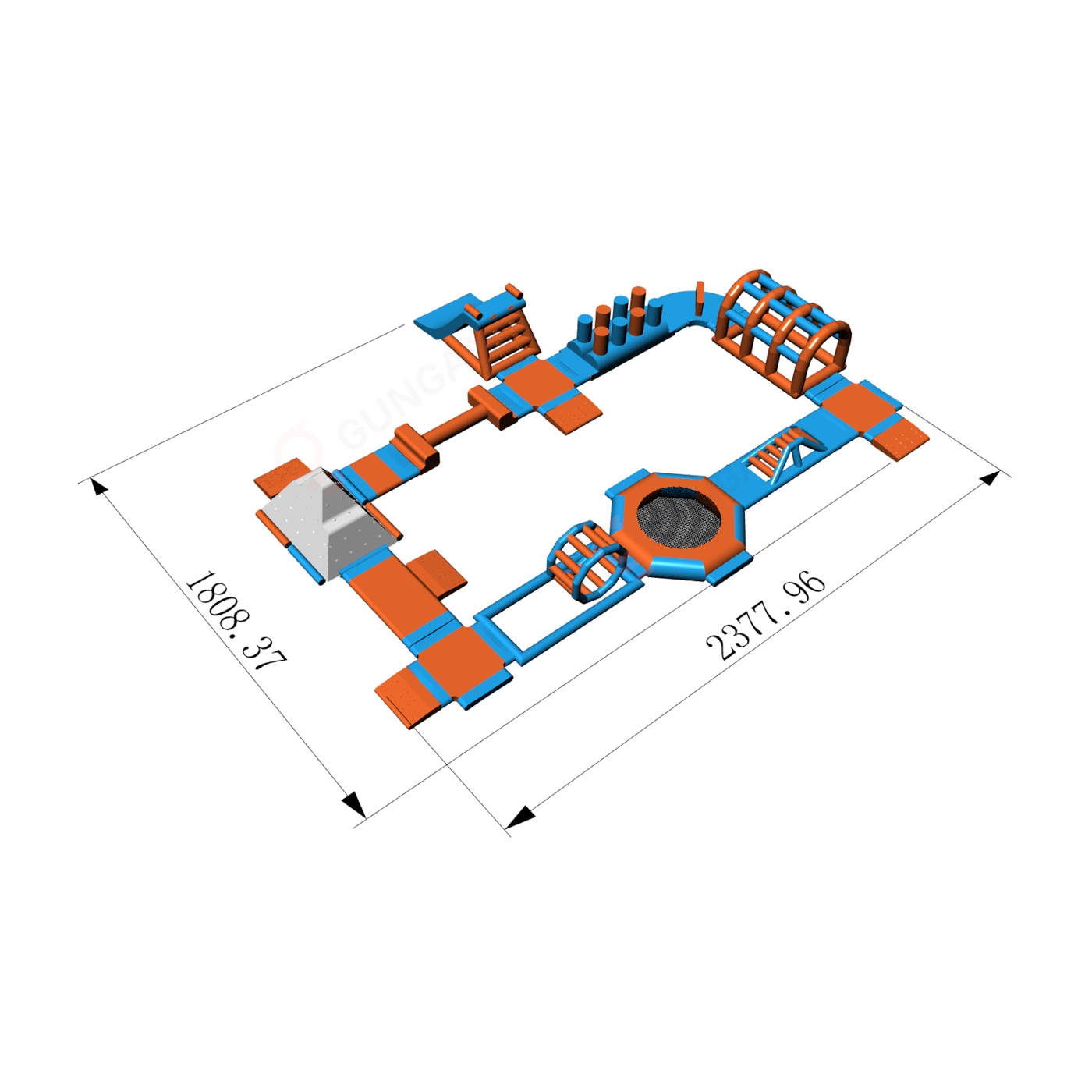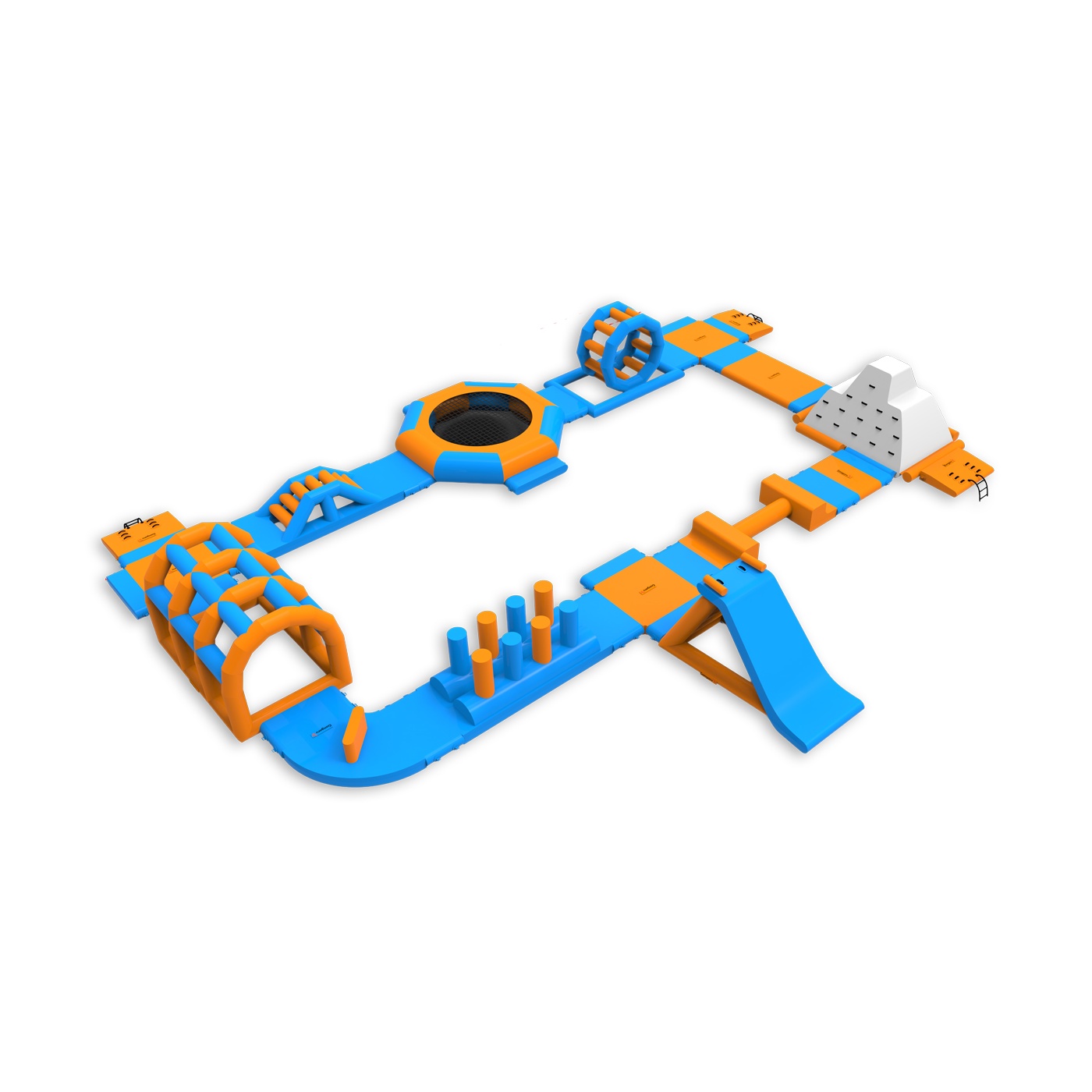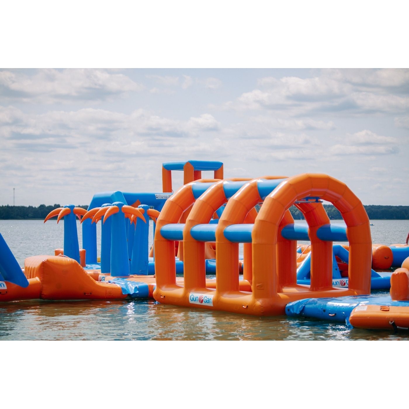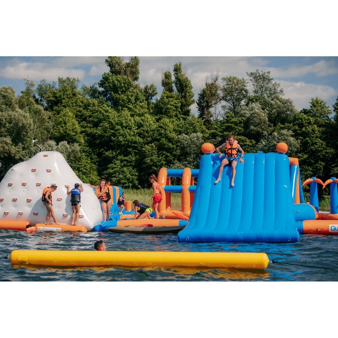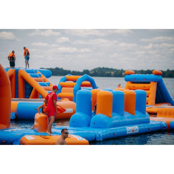 Nafukovací vodní park lze rozšířit o další překážkové dráhy, bójky, lezecké stěny a skluzavky. Nafukovací park můžete dále zatraktivnit balančními podložkami, nafukovacími polštáři, mosty, žebříky a mnoha dalšími prvky. Každý návštěvník parku by měl mít na sobě plovací vestu. Bohatě vybavený nafukovací vodní park pojme až 75 osob najednou! Vytvářejte skupiny, měřte časy, závoďte s přáteli a známými. Nafukovací vodní park je zcela bezpečný. Z případných pádů nemusíte mít vůbec strach – materiál je pružný a velmi měkký. Nafukovací vodní park je ideální řešení pro velké tematické akce. Skvěle se osvědčí také jako hlavní atrakce letních táborů. Vyberte si náš produkt a hrajte si celé hodiny. Nafukovací atrakce jsou k dispozici v různých barevných provedeních. Díky různým tvarům a provedením nafukovacího vodního parku se čas strávený na něm stane nezapomenutelným zážitkem. Nemůžeme vám zaručit dobré počasí, ale zaručíme nafukovací atrakce špičkové kvality, které přilákají zákazníky.