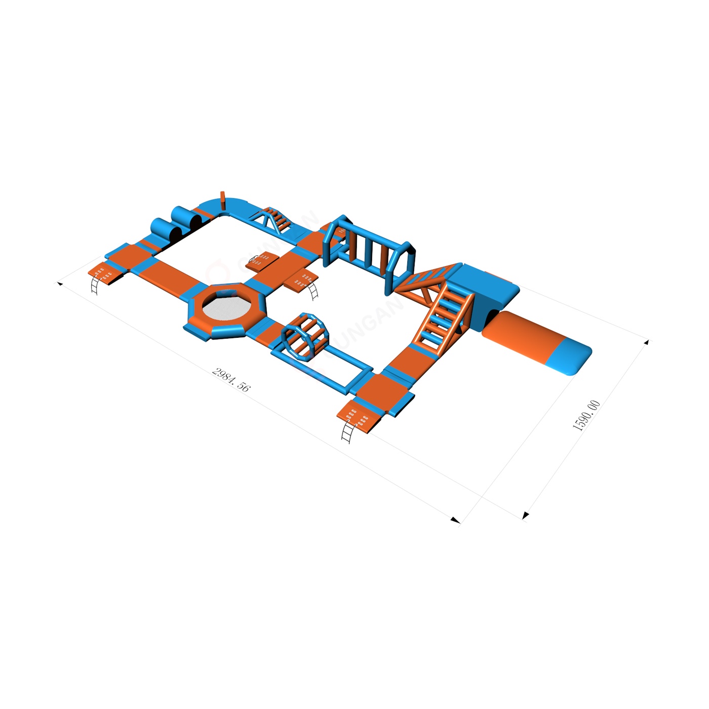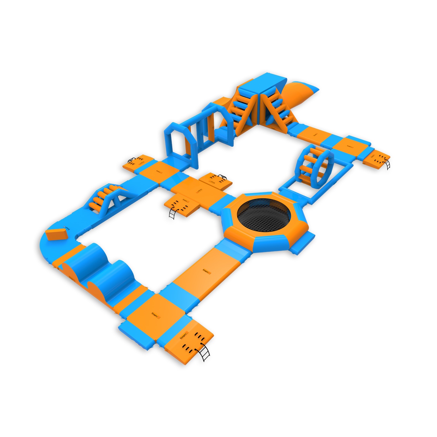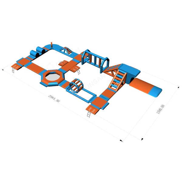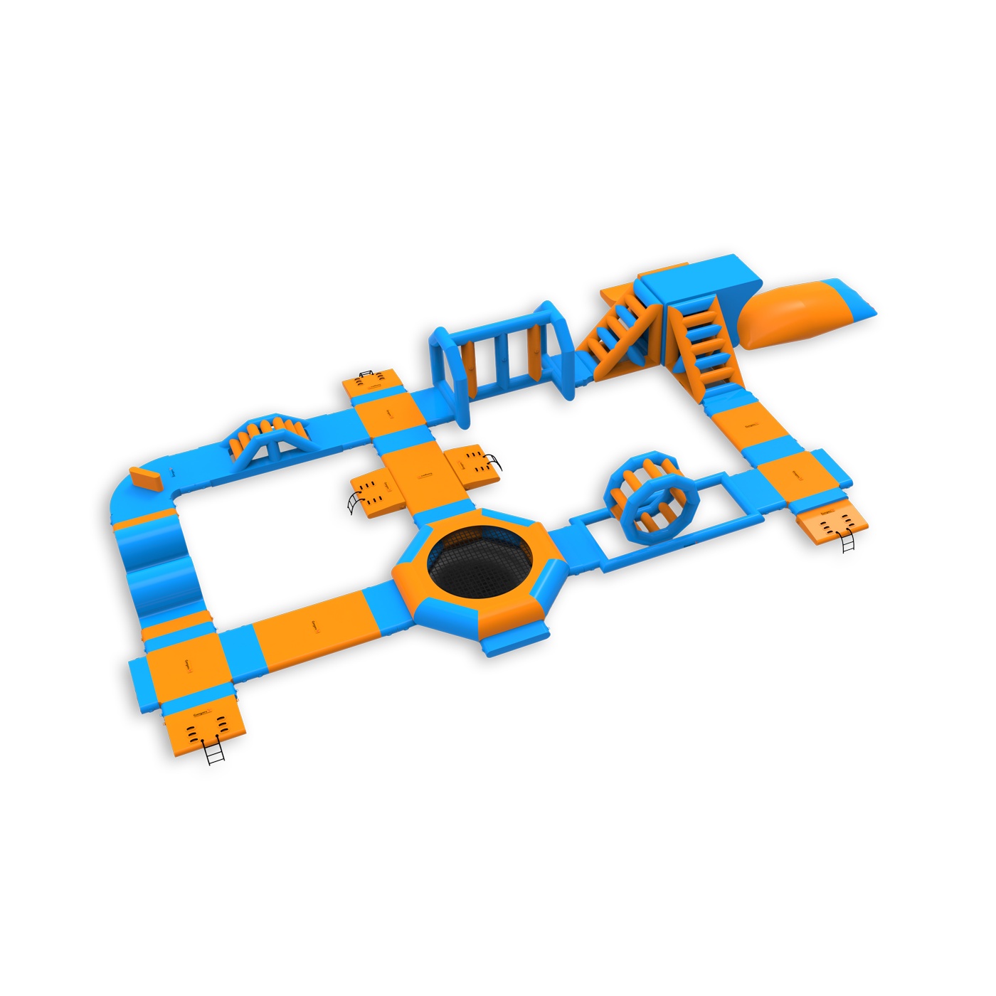 Nafukovací vodní park Gamma (30 x 16 m) nabízí nezapomenutelné zážitky na dlouhé letní dny. Výrobky z této kategorie jsou naprostým hitem pro všechny věkové skupiny, od těch nejmenších až po dospělé milovníky vodních hrátek. Nafukovací vodní parky lze navíc rozšířit o další skluzavky. Dovolená u vody se může proměnit v řadu skvělých dobrodružství a honiček v nafukovacím vodním parku. Vyzkoušejte si překážkové dráhy, zdolejte opičí dráhu a zavěste se těsně nad vodní hladinou. Vyskočte pomocí velkého nafukovacího polštáře.Nafukovací vodní park Gamma (30 x 16 m) je ideální řešení, jak smysluplně využít vodní plochu. Nafukovací vodní park je plně mobilní, skládací a přenosný. S každou novou sezónou můžete svůj nafukovací vodní park rozšířit o nové prvky. Proč investovat do nafukovacího vodního parku pro děti a mládež? S takovou atrakcí vyjdete vstříc zákazníkům, kteří se v horkých dnech touží ochladit. Různorodé překážky vám umožní vytvořit atrakci, které zákazníci nebudou schopni odolat a na které se díky její pestrosti rozhodně nebudou nudit. Pořádejte soutěže pro začátečníky i pokročilé. Díky nafukovacím vodním parkům bezpečně zabavíte své děti na dlouhé hodiny. Rodiče a pečovatelé si tak mohou přímo u nafukovacího vodního parku skvěle odpočinout.