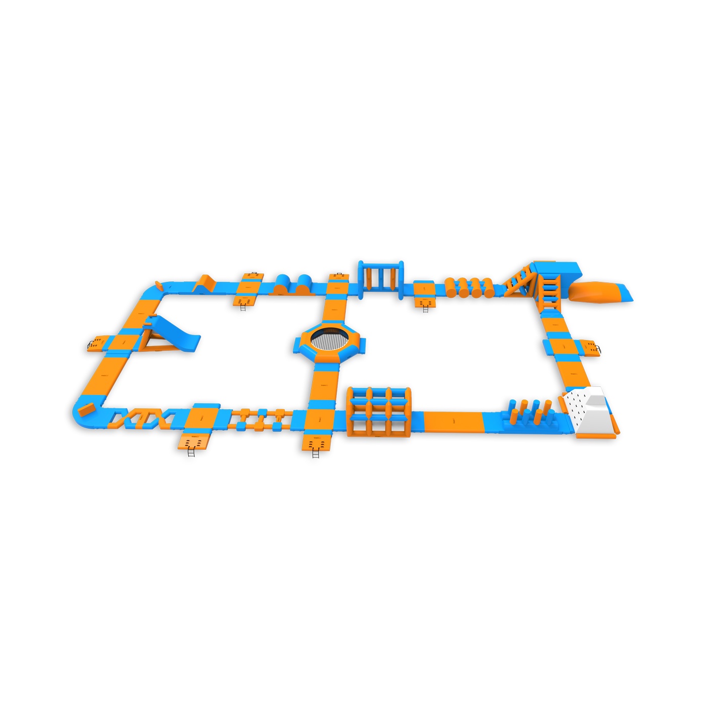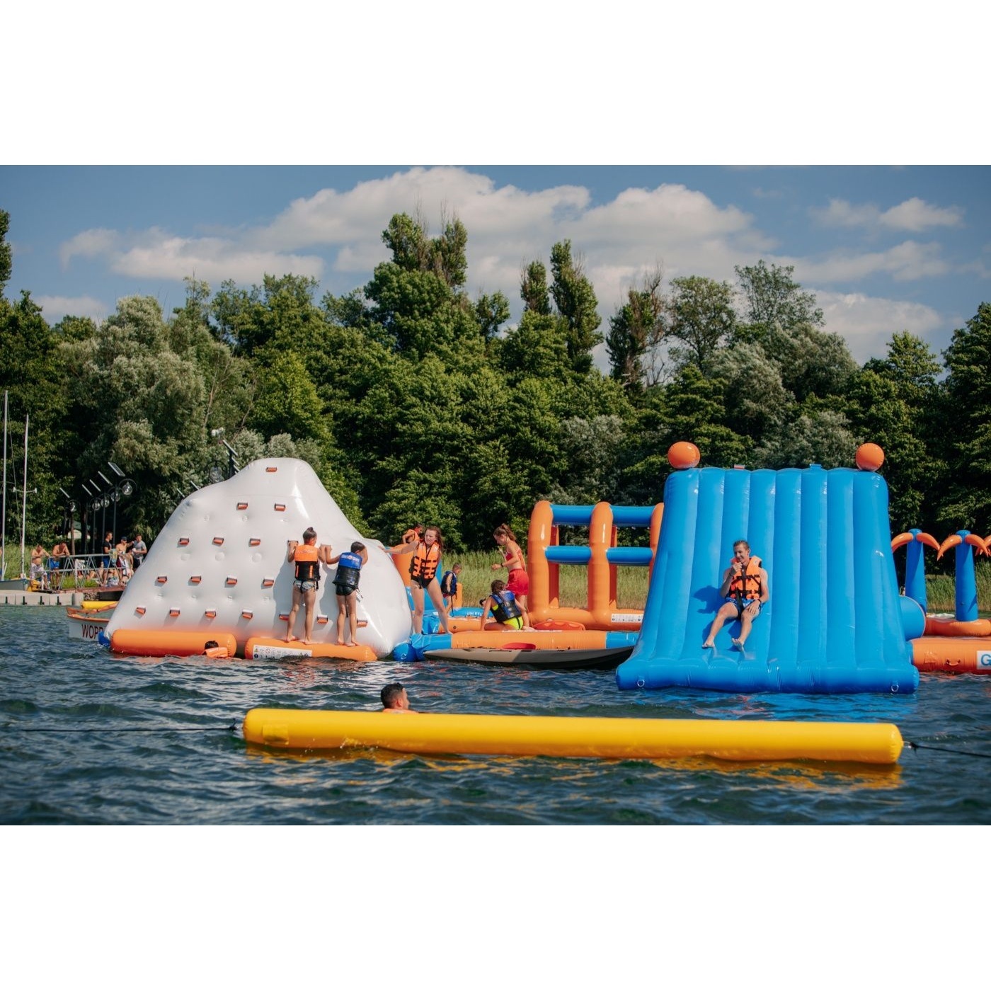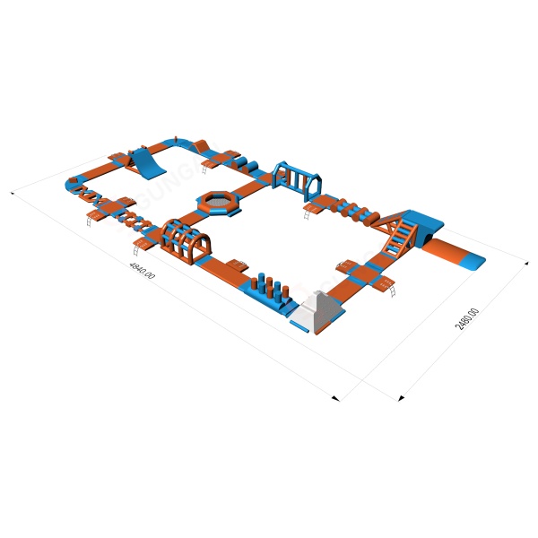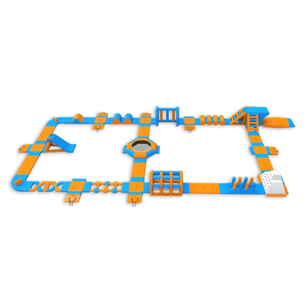 Nafukovací vodní park lze rozšířit o další překážkové dráhy, bójky, lezecké stěny a skluzavky. Nafukovací park můžete dále zatraktivnit balančními podložkami, nafukovacími polštáři, mosty, žebříky a mnoha dalšími prvky. Každý návštěvník parku by měl mít na sobě plovací vestu. Bohatě vybavený nafukovací vodní park pojme až 75 osob najednou! Vytvářejte skupiny, měřte časy, závoďte s přáteli a známými. Nafukovací vodní park je zcela bezpečný. Z případných pádů nemusíte mít vůbec strach – materiál je pružný a velmi měkký. Nafukovací vodní park je ideální řešení pro velké tematické akce. Skvěle se osvědčí také jako hlavní atrakce letních táborů. Vyberte si náš produkt a hrajte si celé hodiny. Nafukovací atrakce jsou k dispozici v různých barevných provedeních. Díky různým tvarům a provedením nafukovacího vodního parku se čas strávený na něm stane nezapomenutelným zážitkem. Nemůžeme vám zaručit dobré počasí, ale zaručíme nafukovací atrakce špičkové kvality, které přilákají zákazníky.