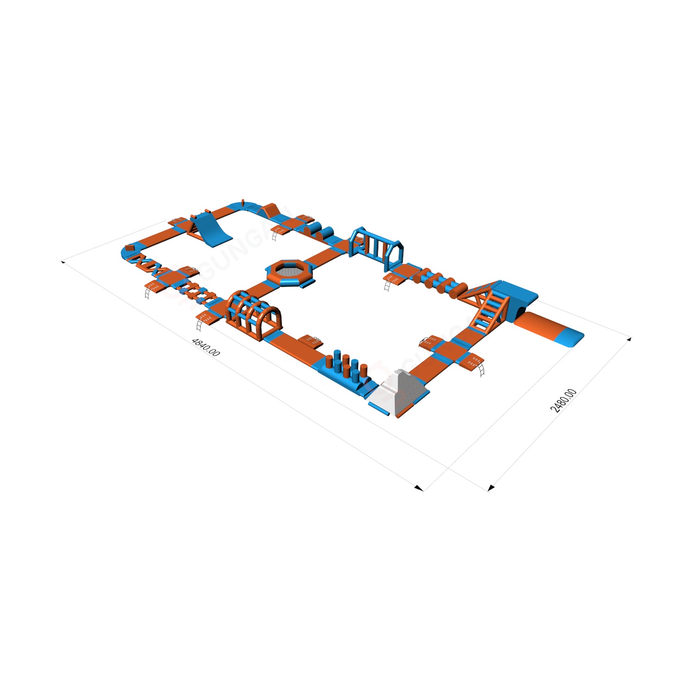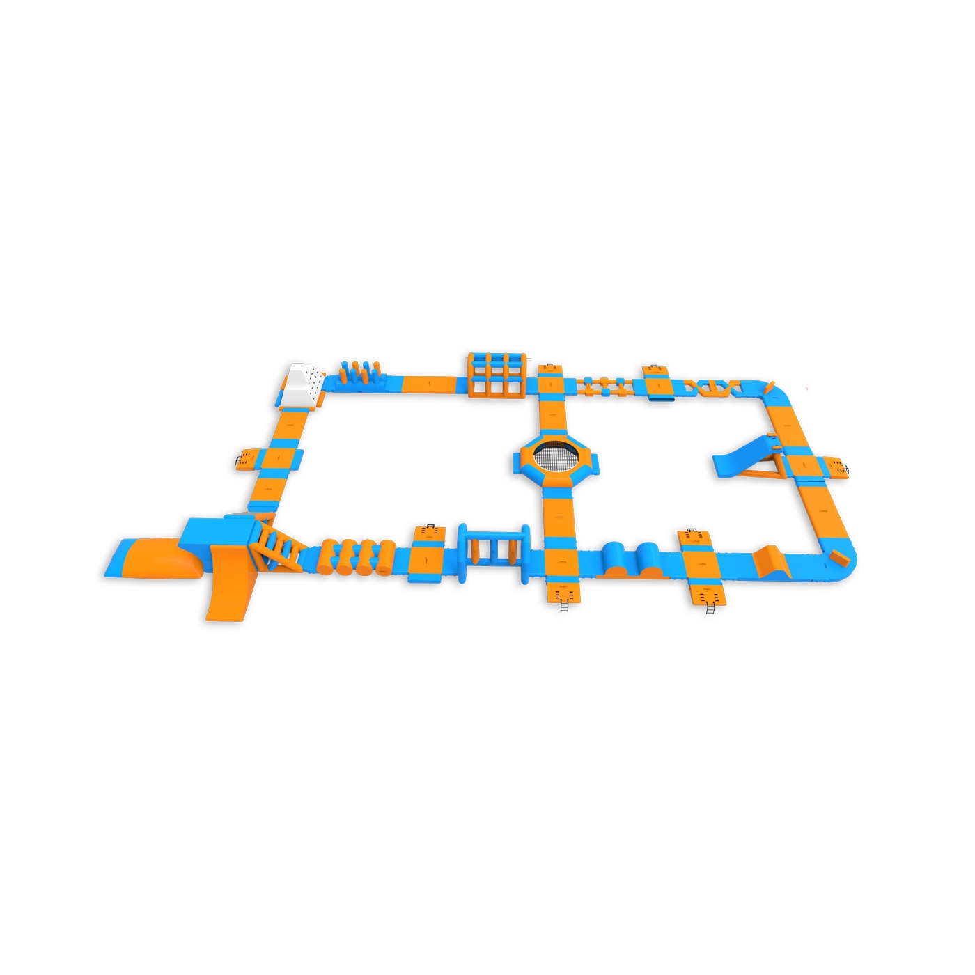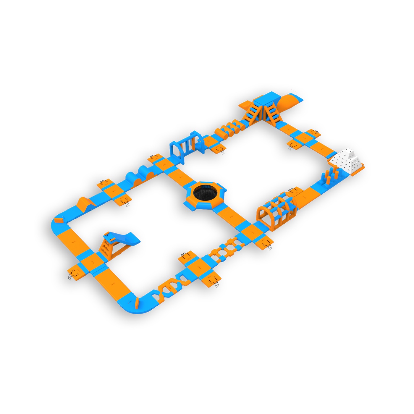 Nafukovací vodní park lze rozšířit o další překážkové dráhy, bójky, lezecké stěny a skluzavky. Nafukovací park můžete dále zatraktivnit balančními podložkami, nafukovacími polštáři, mosty, žebříky a mnoha dalšími prvky. Každý návštěvník parku by měl mít na sobě plovací vestu. Bohatě vybavený nafukovací vodní park pojme až 75 osob najednou! Vytvářejte skupiny, měřte časy, závoďte s přáteli a známými. Nafukovací vodní park je zcela bezpečný. Z případných pádů nemusíte mít vůbec strach – materiál je pružný a velmi měkký. Nafukovací vodní park je ideální řešení pro velké tematické akce. Skvěle se osvědčí také jako hlavní atrakce letních táborů. Vyberte si náš produkt a hrajte si celé hodiny. Nafukovací atrakce jsou k dispozici v různých barevných provedeních. Díky různým tvarům a provedením nafukovacího vodního parku se čas strávený na něm stane nezapomenutelným zážitkem. Nemůžeme vám zaručit dobré počasí, ale zaručíme nafukovací atrakce špičkové kvality, které přilákají zákazníky.