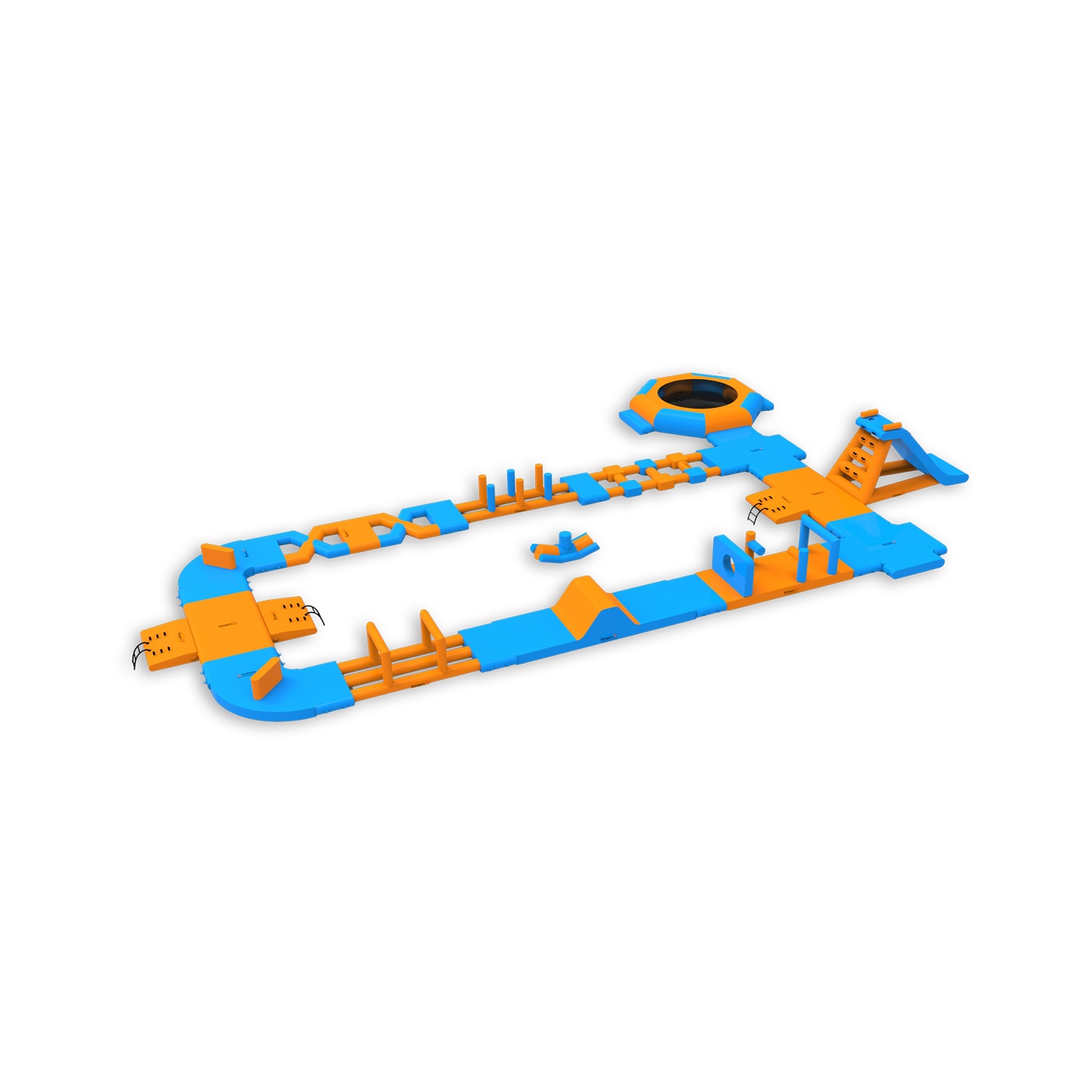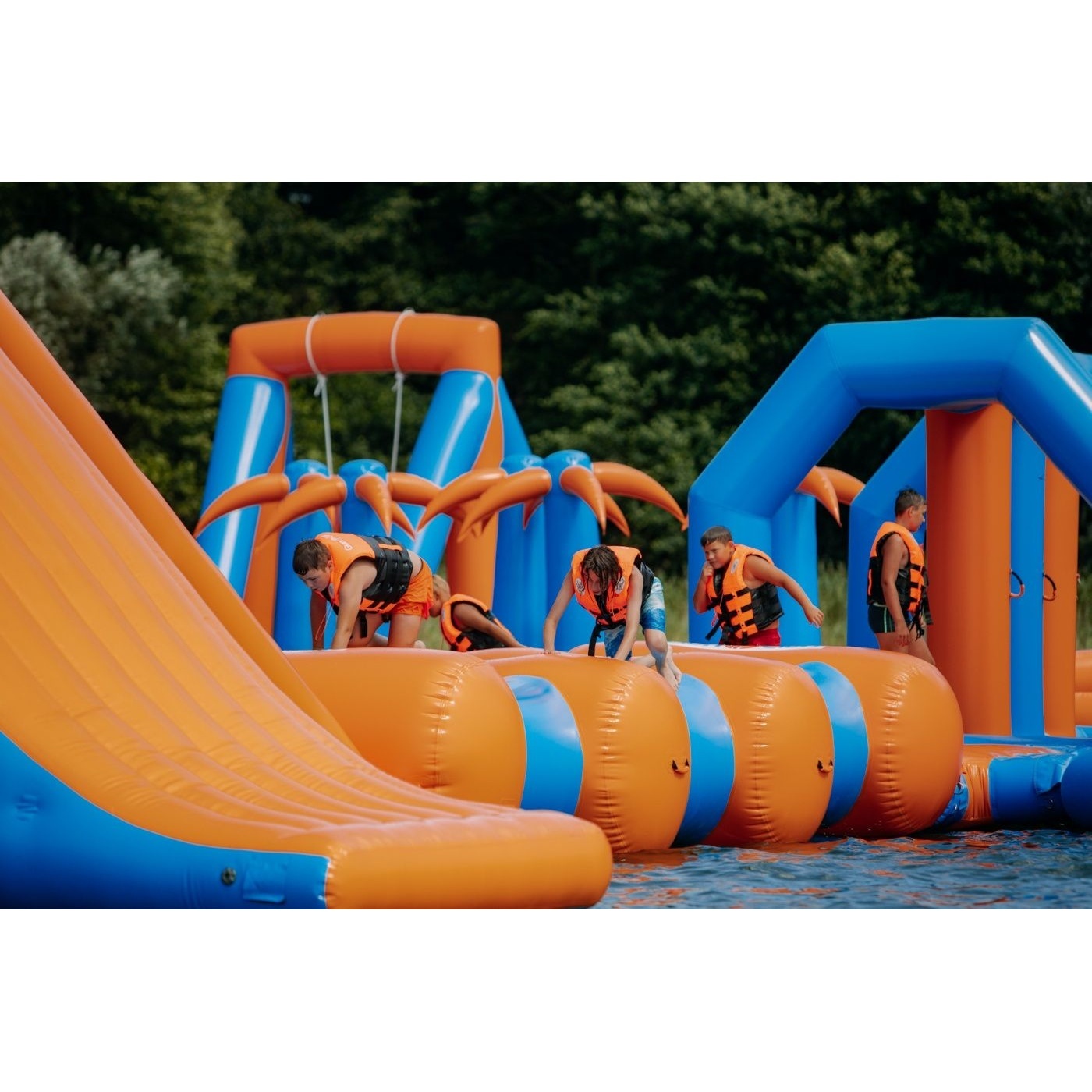Nafukovací vodní park Mi (28 x 17 m) nabízí nezapomenutelné zážitky na dlouhé letní dny. Výrobky z této kategorie jsou naprostým hitem pro všechny věkové skupiny, od těch nejmenších až po dospělé milovníky vodních hrátek. Nafukovací vodní parky lze navíc rozšířit o další skluzavky. Dovolená u vody se může proměnit v řadu skvělých dobrodružství a honiček v nafukovacím vodním parku. Vyzkoušejte si překážkové dráhy, zdolejte opičí dráhu a zavěste se těsně nad vodní hladinou. Vyskočte pomocí velkého nafukovacího polštáře.Nafukovací vodní park Mi (28 x 17 m) je ideální řešení, jak smysluplně využít vodní plochu. Nafukovací vodní park je plně mobilní, skládací a přenosný. S každou novou sezónou můžete svůj nafukovací vodní park rozšířit o nové prvky. Proč investovat do nafukovacího vodního parku pro děti a mládež? S takovou atrakcí vyjdete vstříc zákazníkům, kteří se v horkých dnech touží ochladit. Různorodé překážky vám umožní vytvořit atrakci, které zákazníci nebudou schopni odolat a na které se díky její pestrosti rozhodně nebudou nudit. Pořádejte soutěže pro začátečníky i pokročilé. Díky nafukovacím vodním parkům bezpečně zabavíte své děti na dlouhé hodiny. Rodiče a pečovatelé si tak mohou přímo u nafukovacího vodního parku skvěle odpočinout.