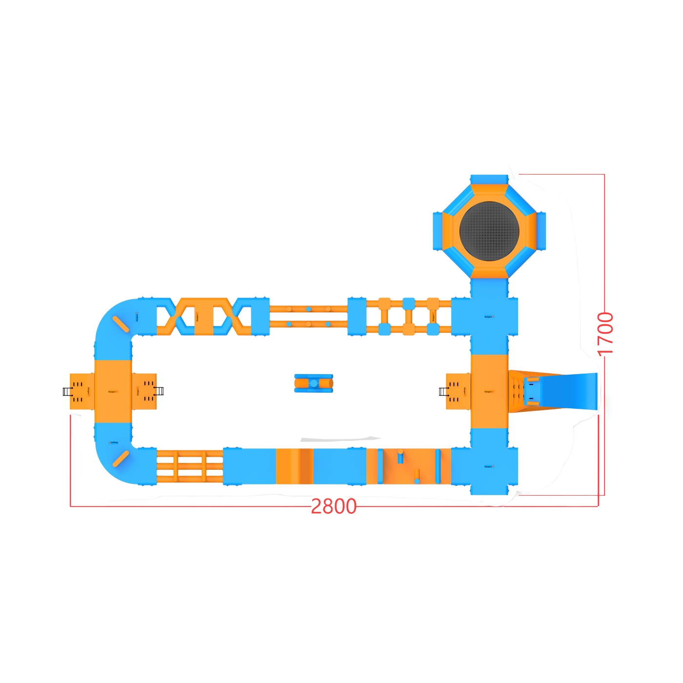 Nafukovací vodní park Mi je skvělým hracím prostorem, který posouvá zábavu na novou úroveň! Díky různým překážkám a prvkům, které je třeba zdolat, tento park podporuje fyzickou aktivitu a soutěživost a umožňuje každému účastníkovi objevit své schopnosti. Ať už jste jakéhokoli věku, tento park vám poskytne spoustu zábavy a nezapomenutelných vzpomínek na vodní dobrodružství!
